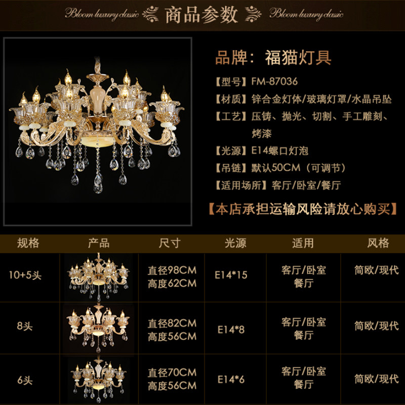 水晶吊灯欧式客厅灯具锌合金蜡烛灯复古奢华卧室餐厅别墅会所灯饰