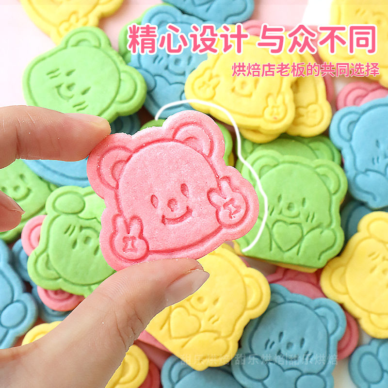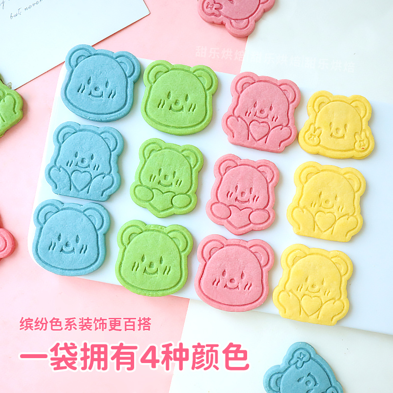 黄油小熊饼干蛋糕装饰彩色可食用卡通比心造型纸杯甜品台烘焙摆件