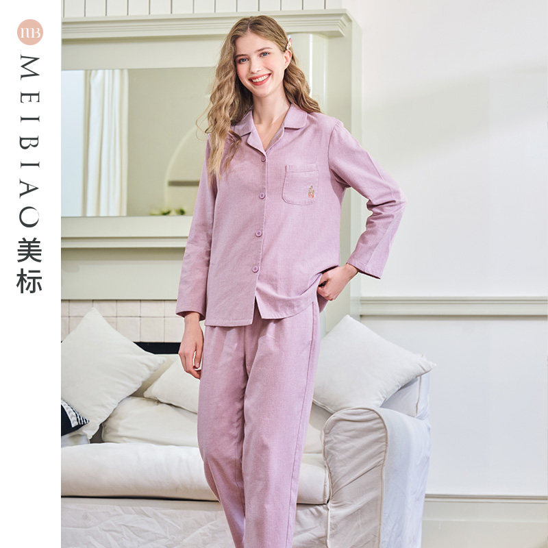美标新款长袖纯棉睡衣套装女春秋梭织磨毛休闲可外穿全棉家居服冬