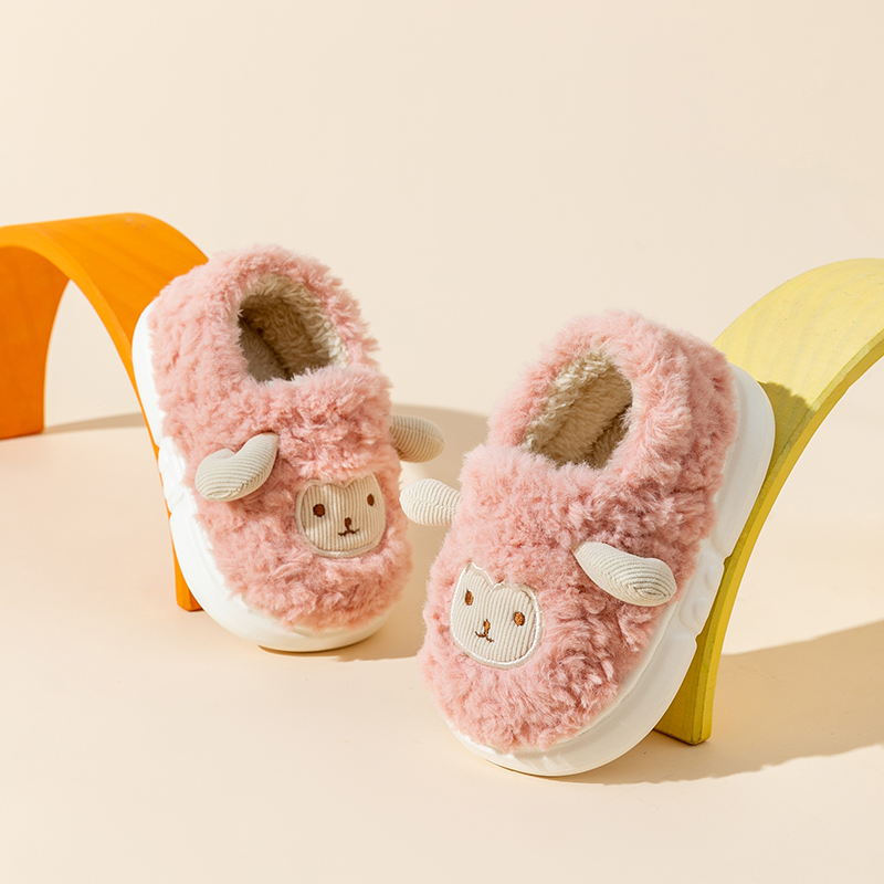 儿童棉拖鞋包跟男女童冬季室内防滑保暖棉鞋宝宝中童亲子毛拖鞋