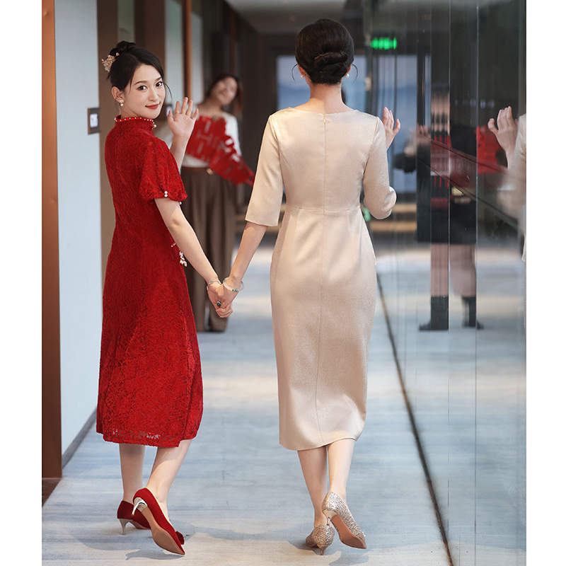 香槟色喜婆婆婚宴装2025新款气质高贵年轻妈妈婚礼晚礼服平时可穿