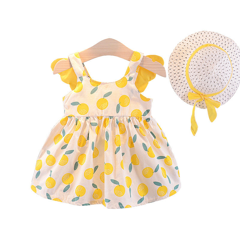 女童连衣裙夏季新款2021草帽洋气裙子女宝宝夏装背心裙女孩公主裙