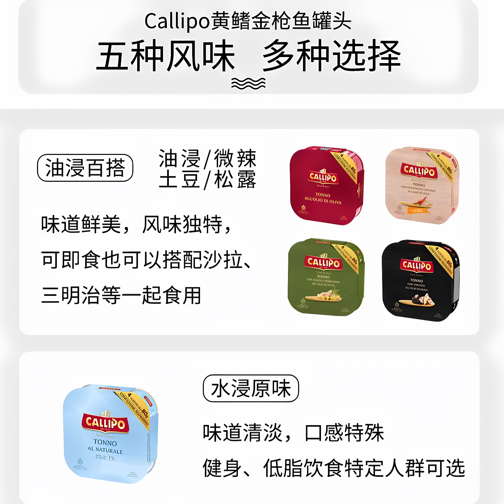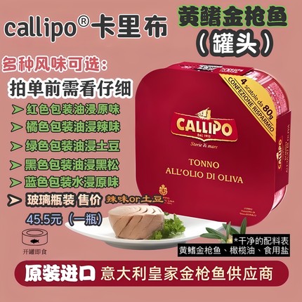 意大利原装进口卡里布金枪鱼罐头橄榄油浸即食优质蛋白健身营养餐