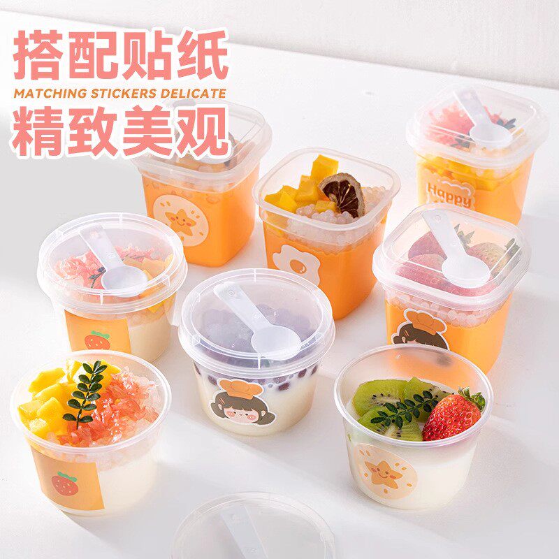 一次性布丁杯带盖含勺子 pp塑料杯冰淇淋慕斯酸奶打包盒汤碗加厚