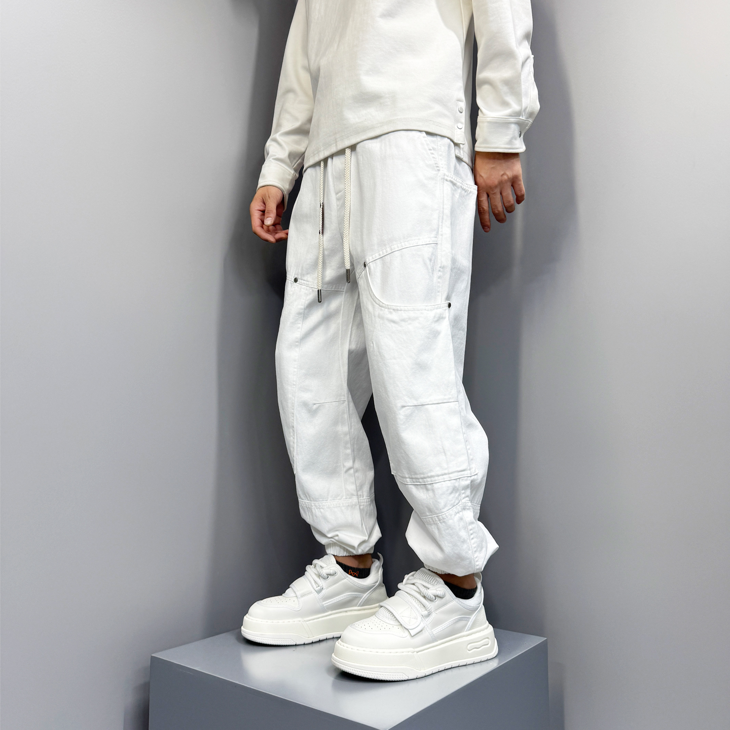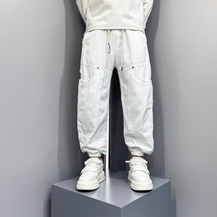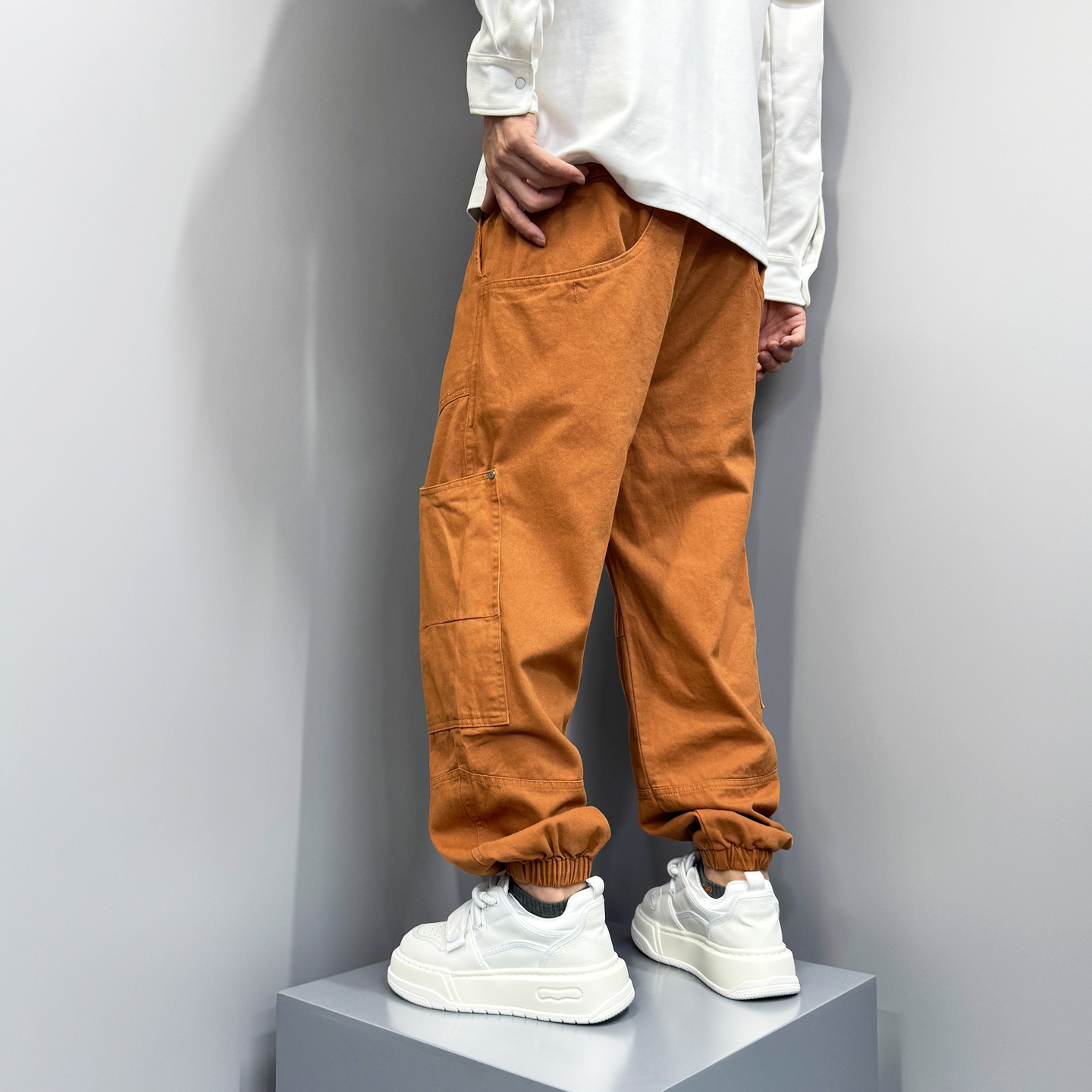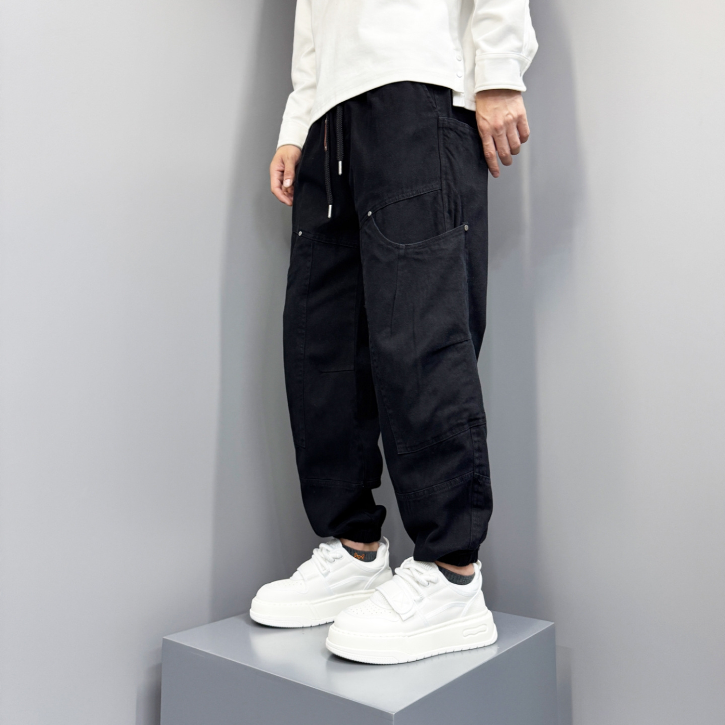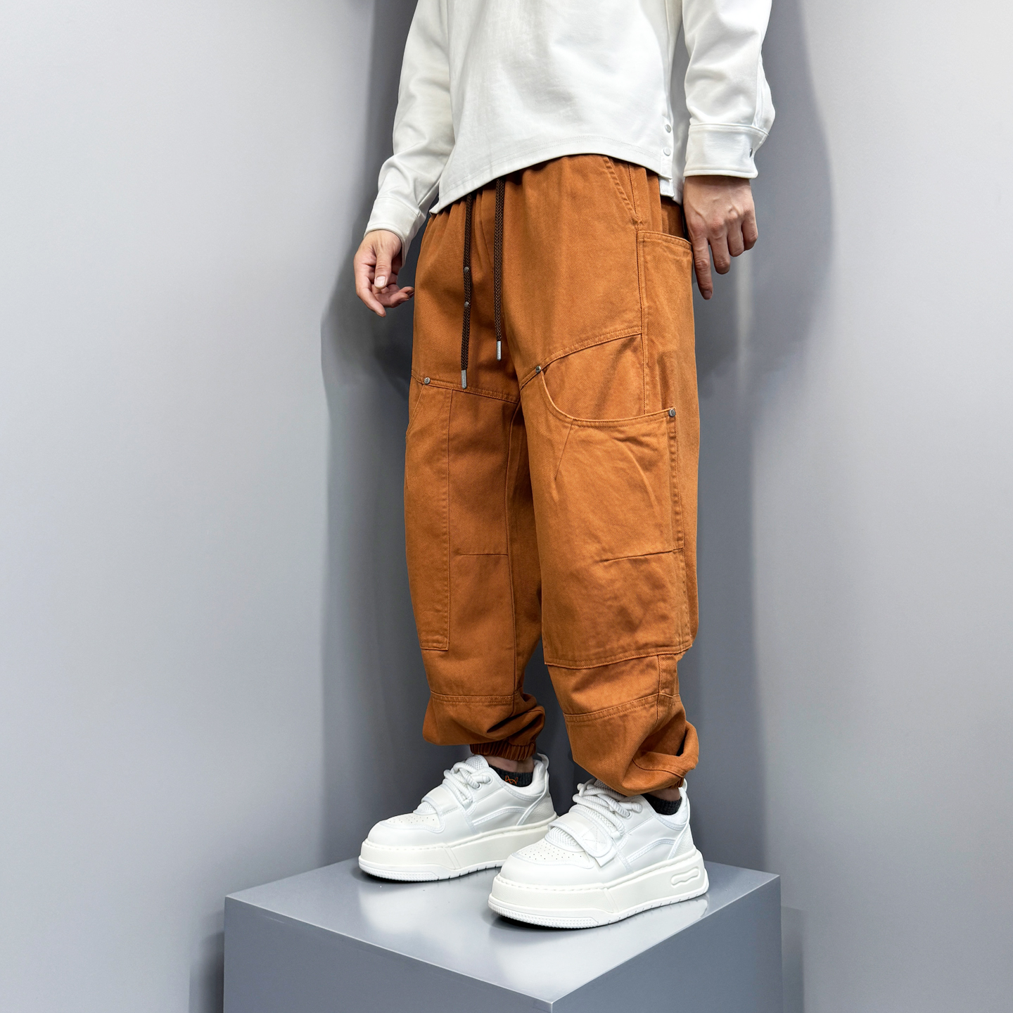 2025秋冬新款美式重磅加厚休闲裤男士宽松运动卫裤拼接束脚长裤子