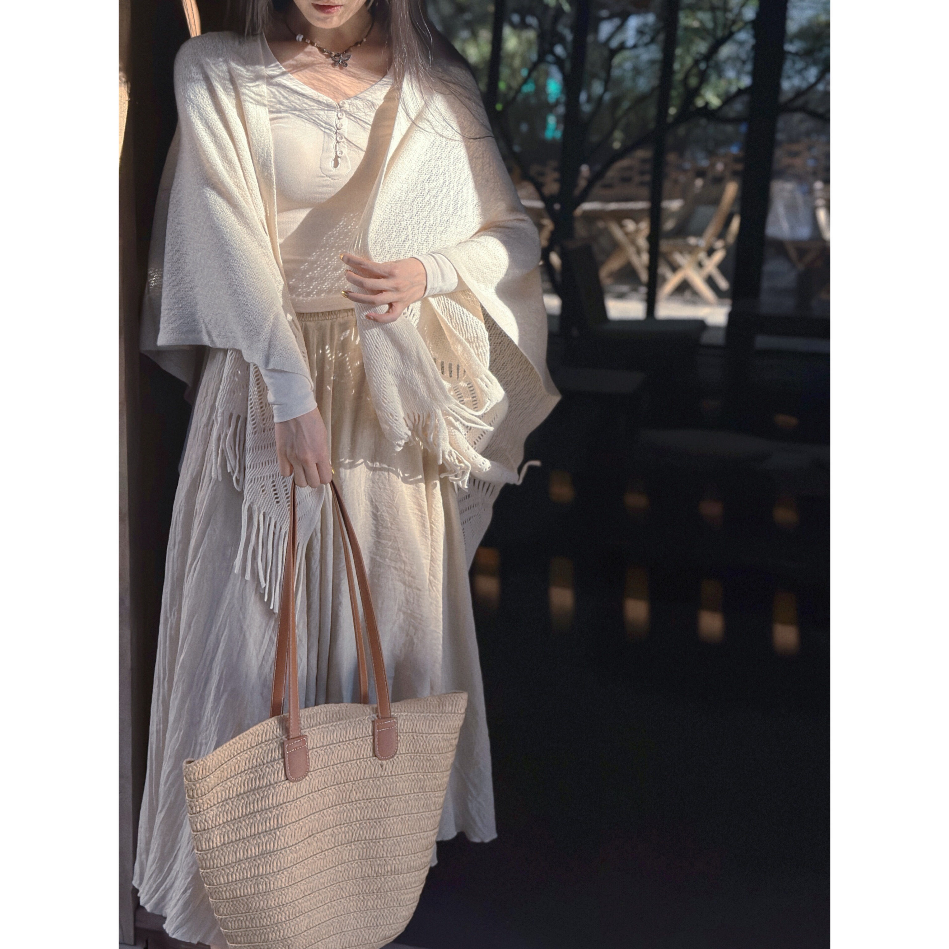 橘里CHIU流苏设计披肩复古仙女开衫禅意半身裙文艺新中式三件套装