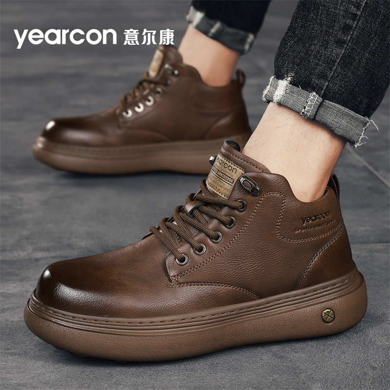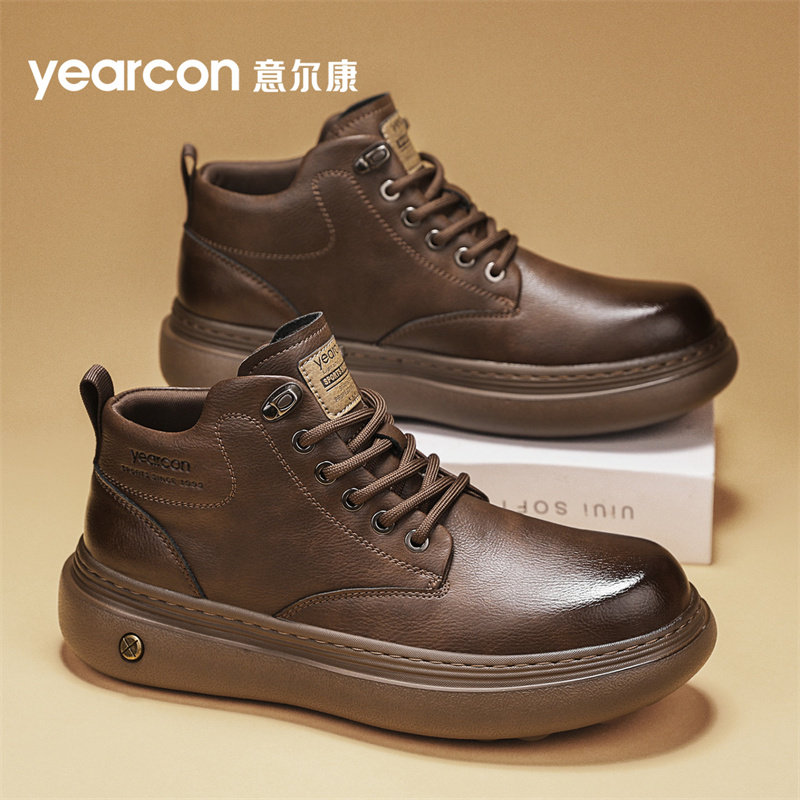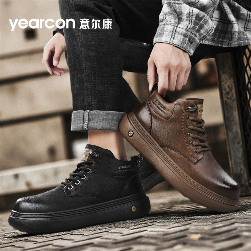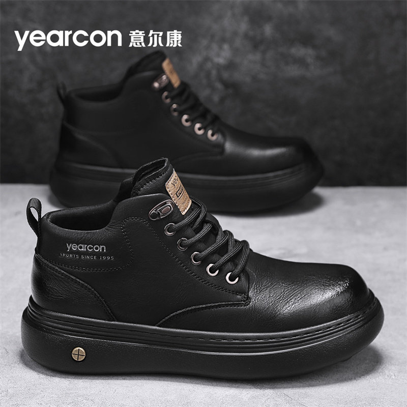 意尔康马丁靴男款2026新款春季爆款增高休闲工装板鞋男士高帮皮鞋