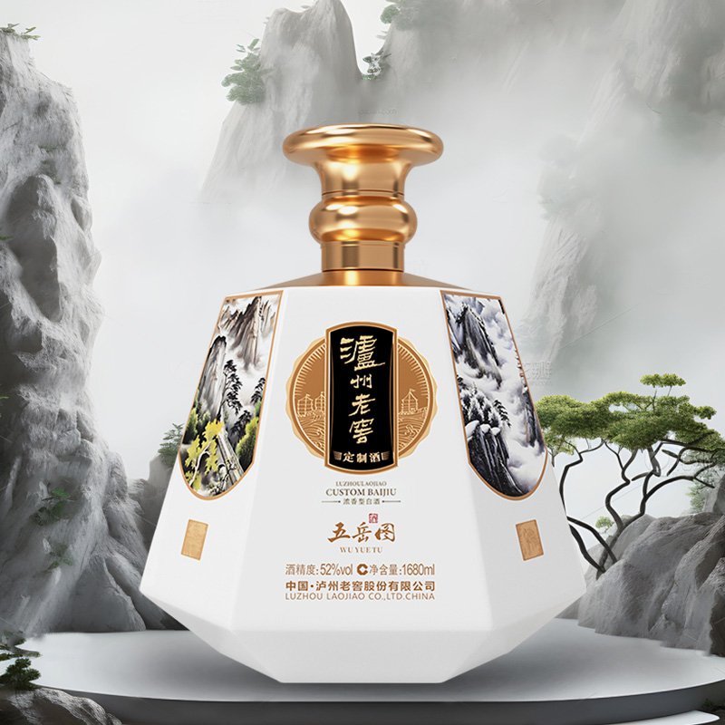 泸州老窖定制酒五岳图52度浓香型坛装白酒1680ml大坛白酒收藏摆柜