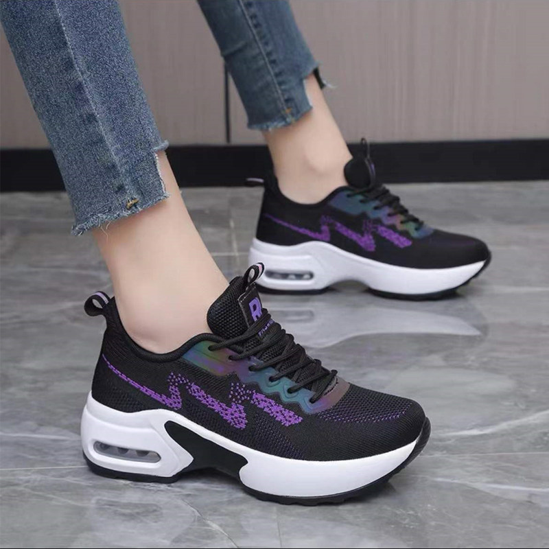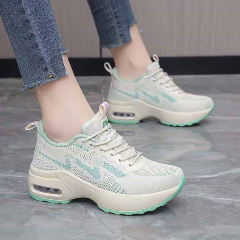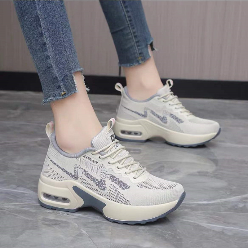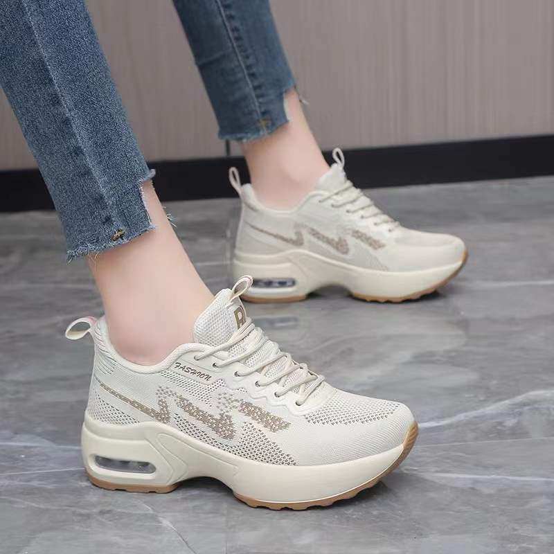 春季隐形内增高6CM运动鞋女33小码34厚底气垫女鞋网面休闲旅游鞋