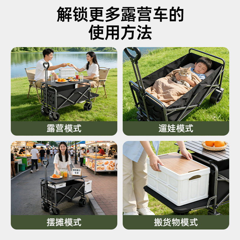 户外露营车营地推车可折叠超大野营摆摊手拉旅行拖车快递小推车