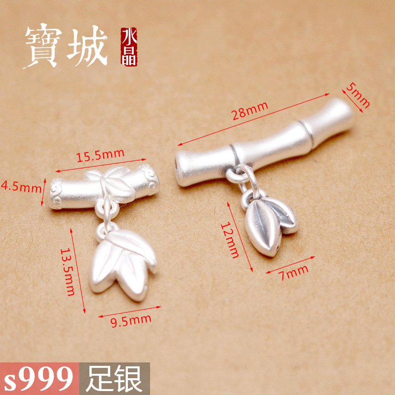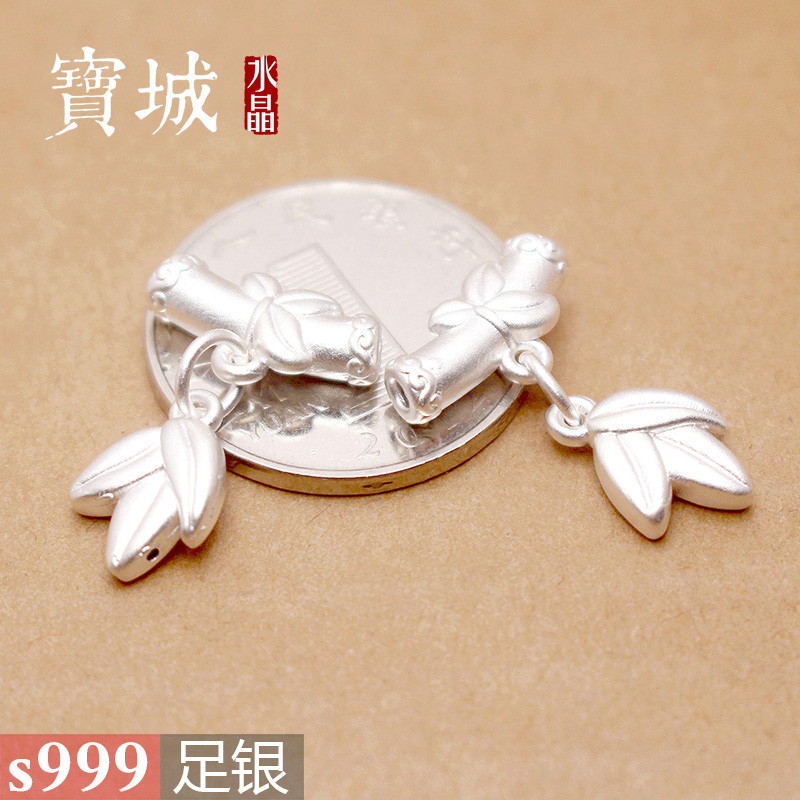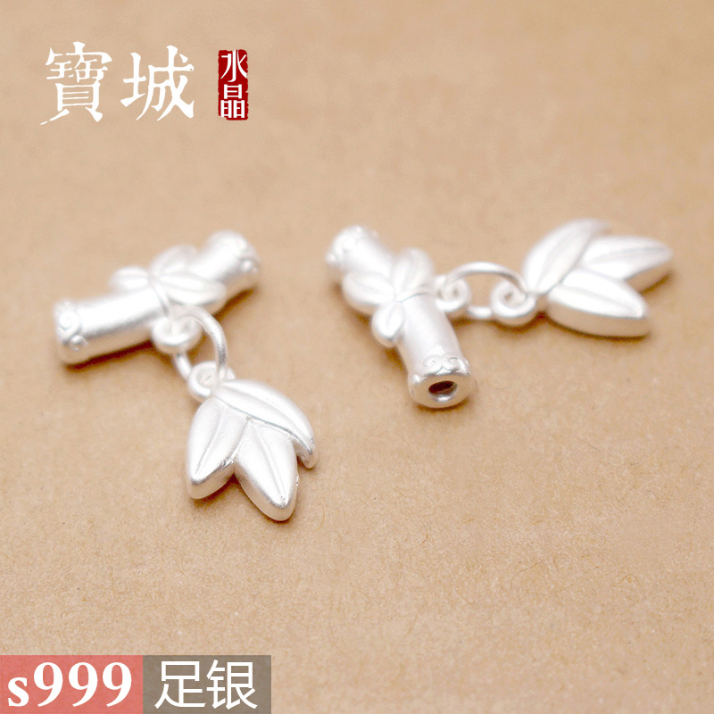 s999足银纯银3D硬银竹节竹叶弯管挂件 diy手链手串项链饰品银配件