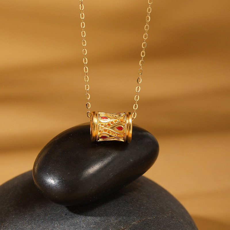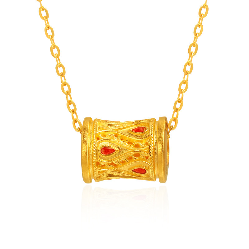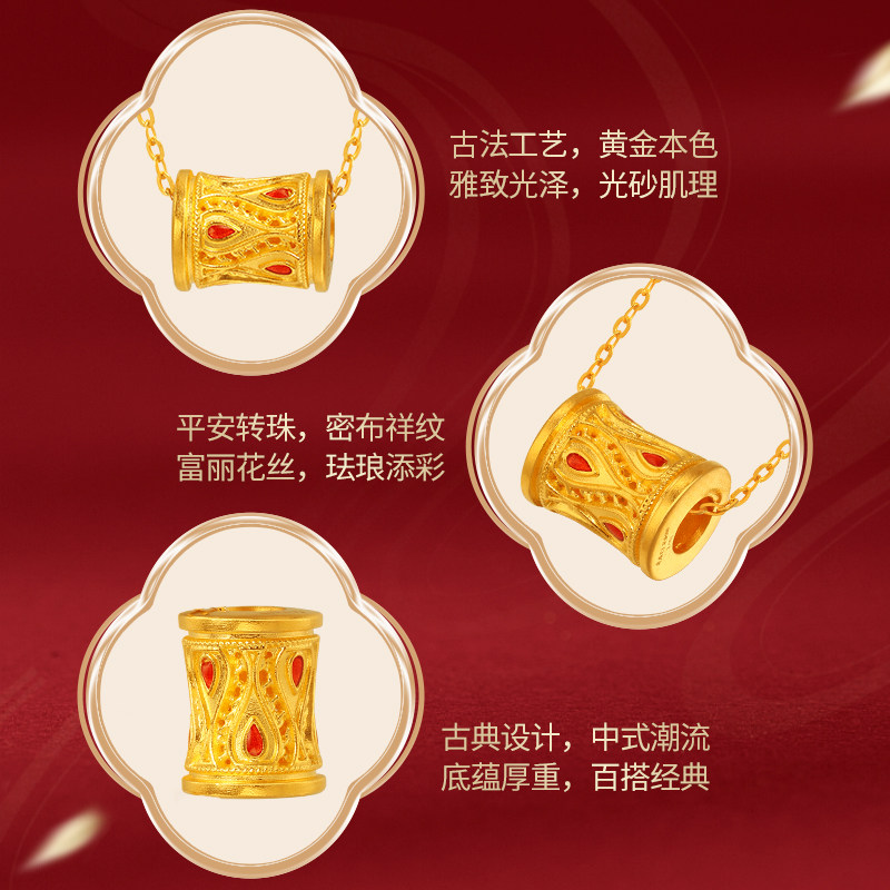 老庙黄金足金999古法金事事金安平安花丝红珐琅转运珠挂坠凤羽