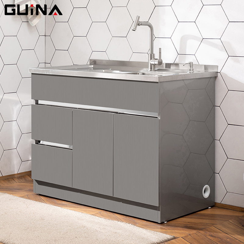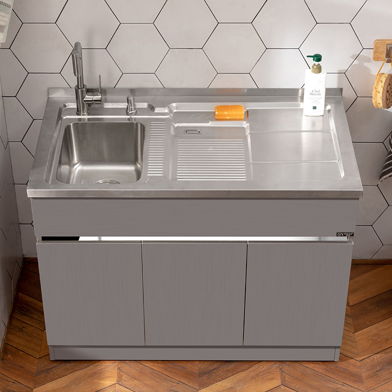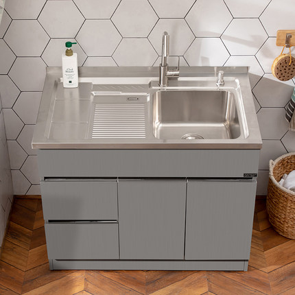 304台盆柜不锈钢洗衣柜组合水槽柜带搓板小户型洗衣池阳台浴室柜