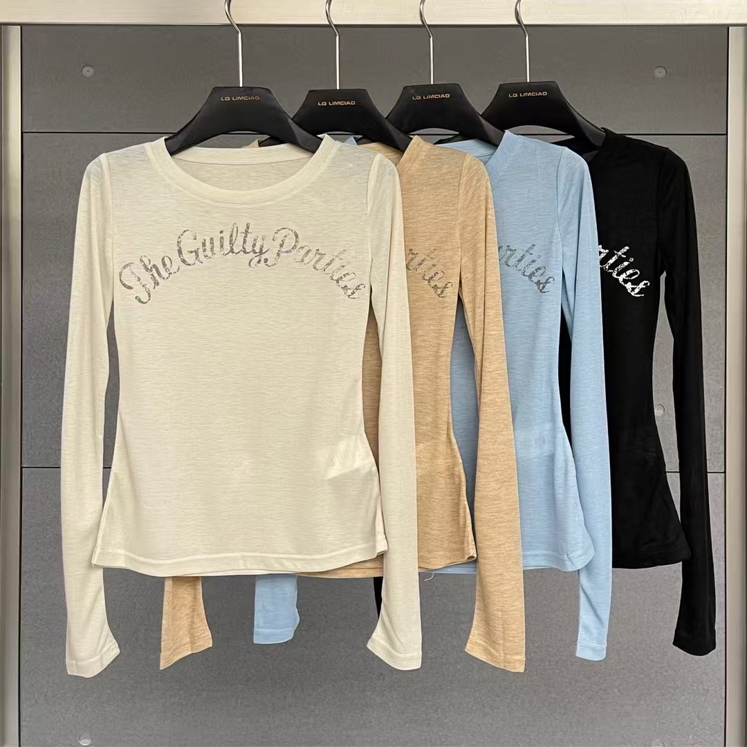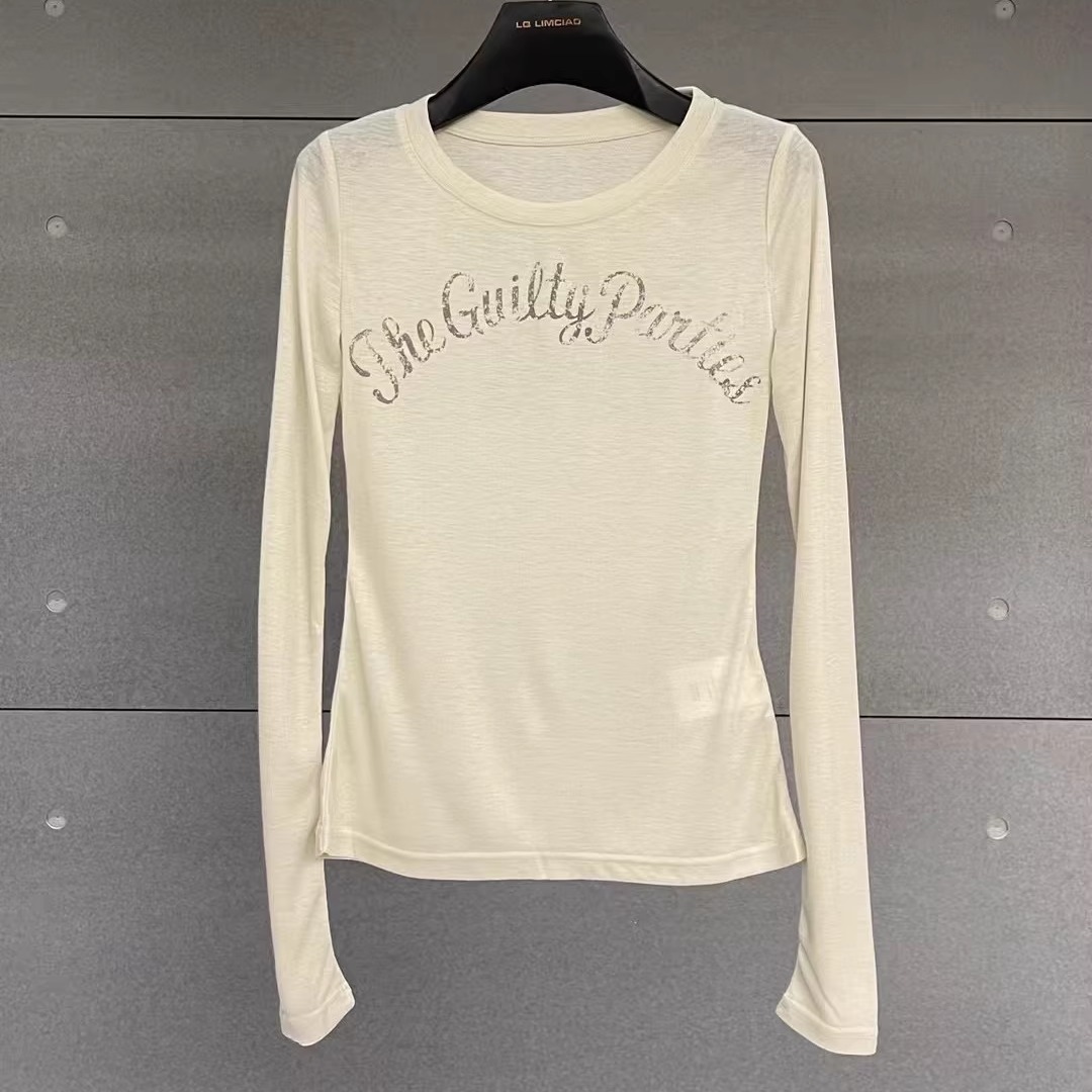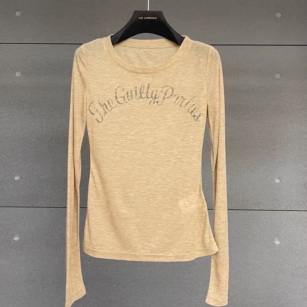 欧洲站2025秋季新款美式复古字母印花修身显瘦打底衫长袖T恤上衣