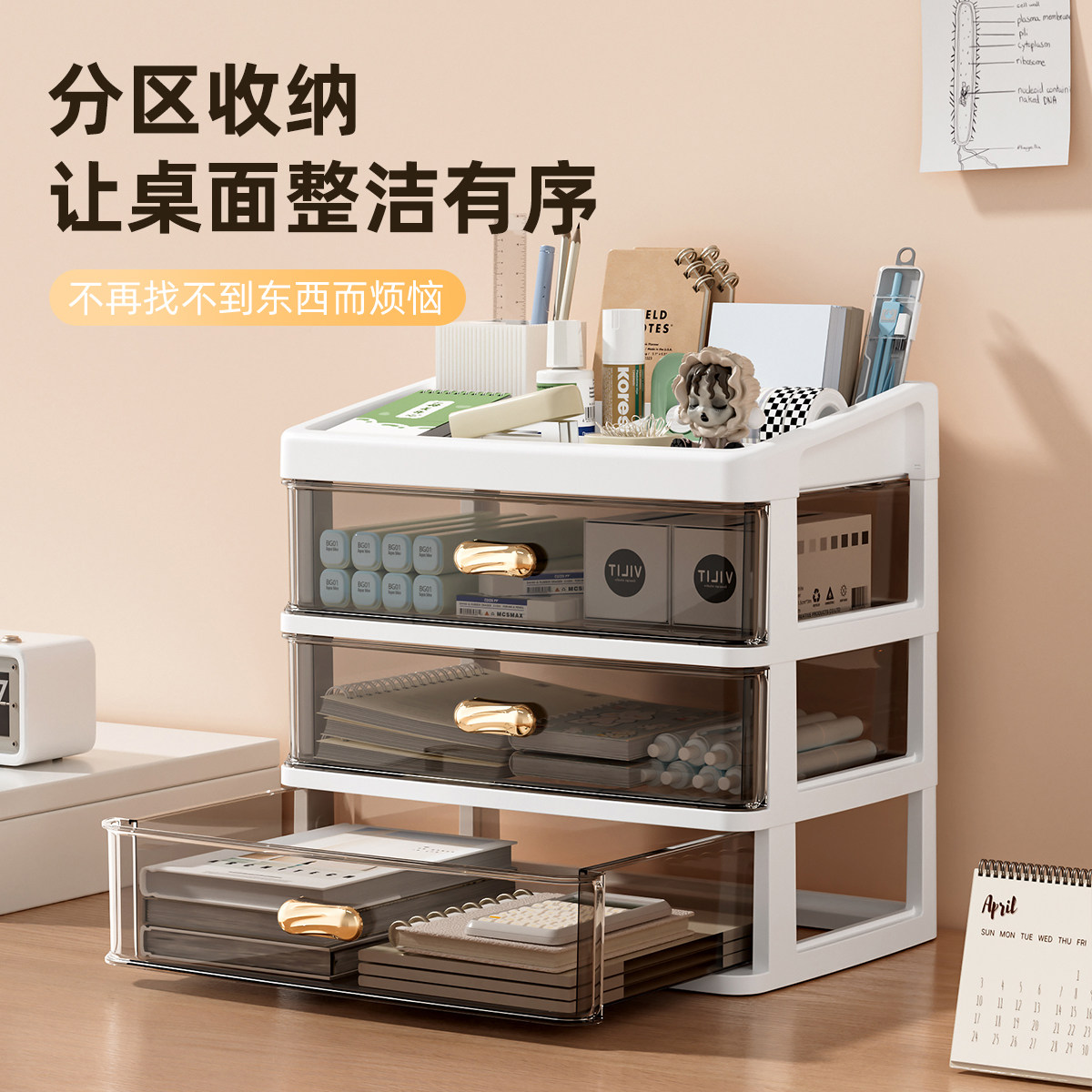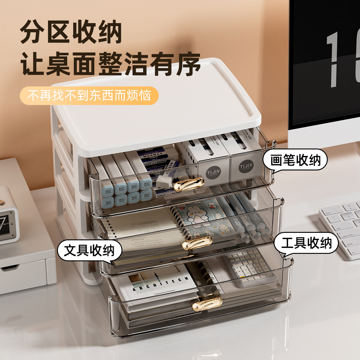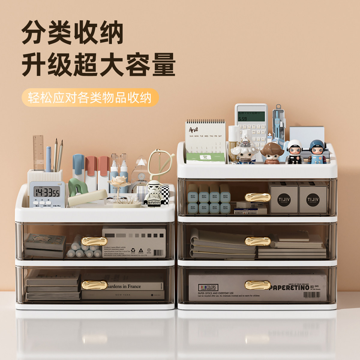 抽屉式桌面收纳盒办公室书桌工位整理神器文具置物架化妆品储物柜
