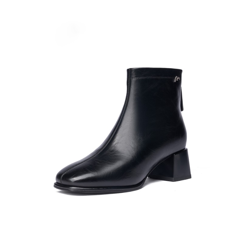 卓诗尼2025秋冬新款短靴女粗跟后拉链时尚舒适加绒瘦瘦靴切尔西靴