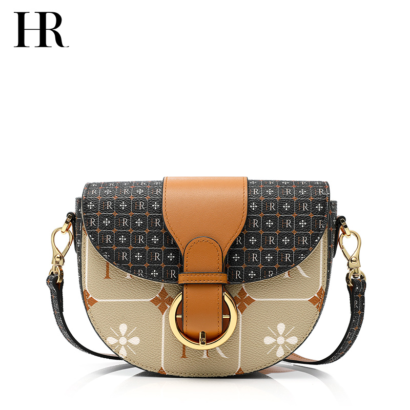 HR赫莲娜包包2022秋冬新款y马鞍包印花休闲单肩包洋气时尚斜挎包