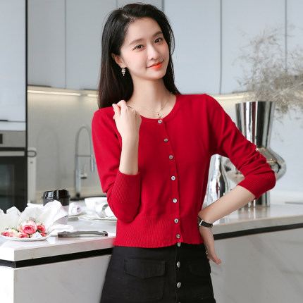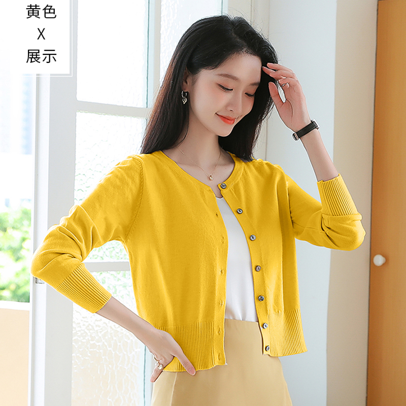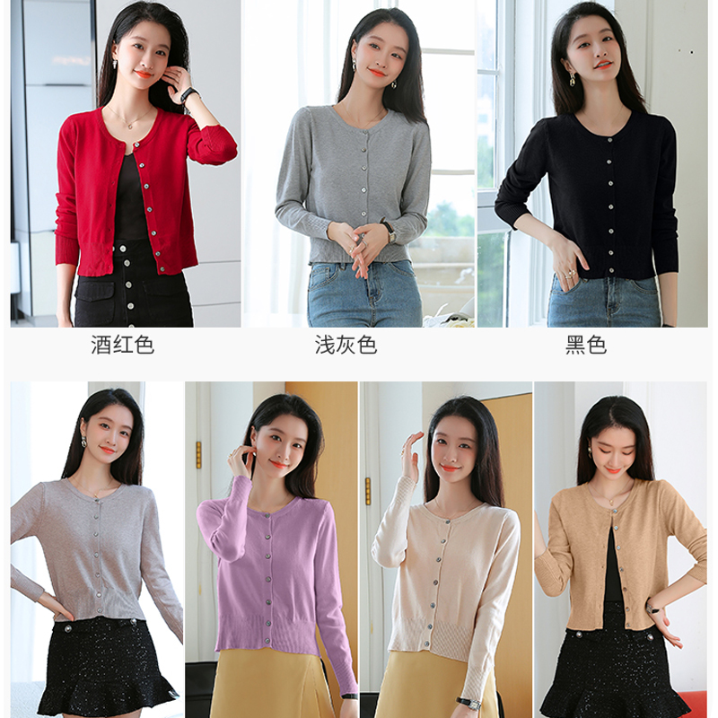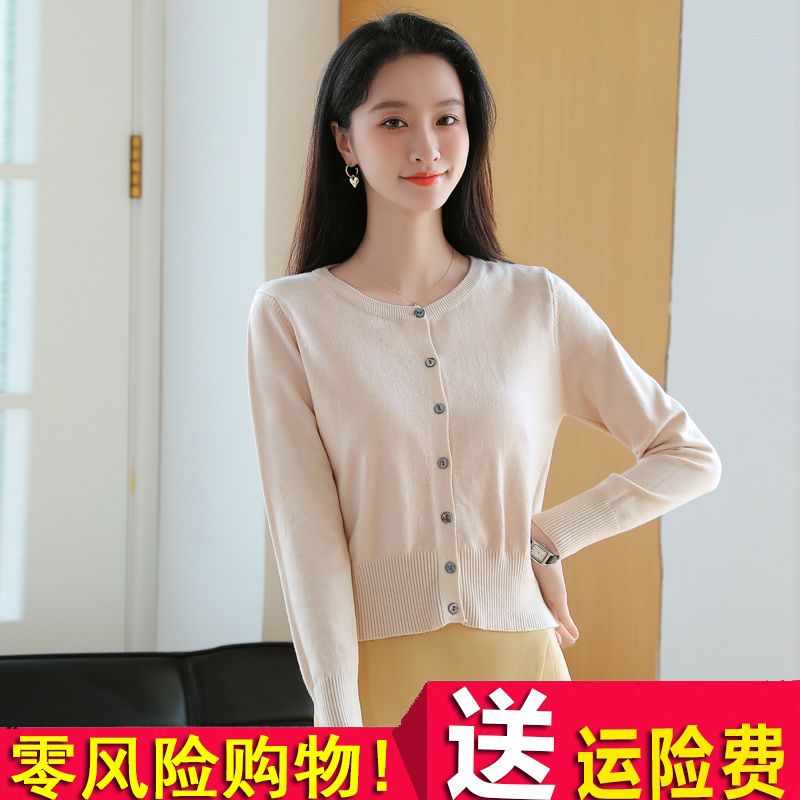 薄款针织衫秋季女装2025新款外搭开衫修身长袖小个子短款毛衣外套