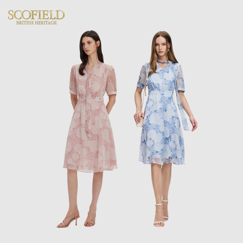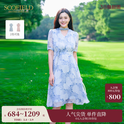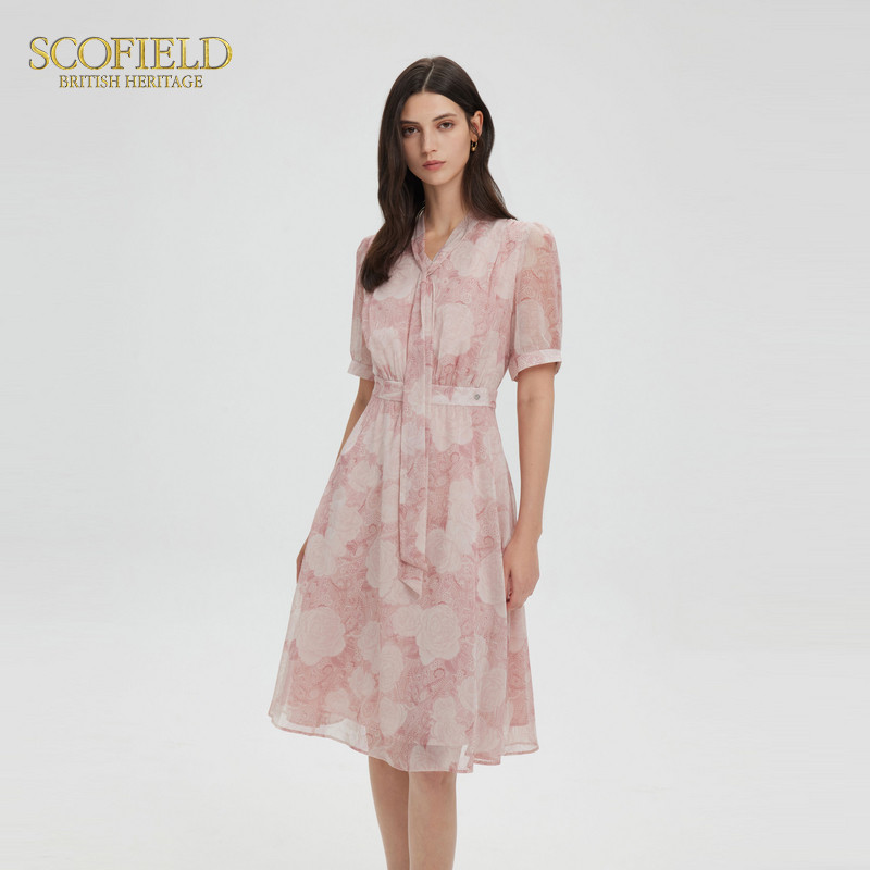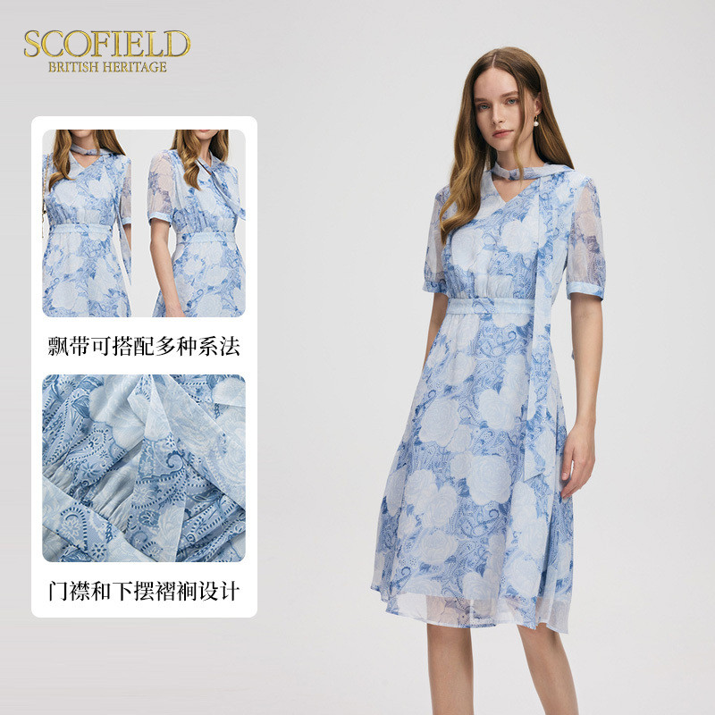 Scofield女装优雅浪漫飘带连衣裙氛围感印花裙子