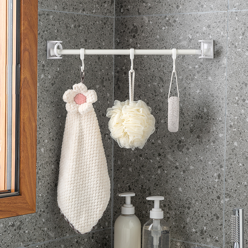 可旋转圆环伸缩杆固定器免打孔强力粘胶粘钩毛巾杆浴帘杆窗帘杆托