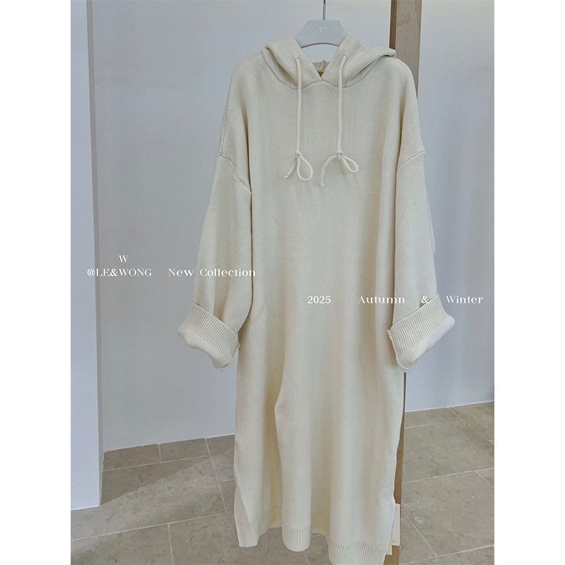 W家 韩版慵懒风时尚直筒长款连帽针织裙女2025秋新款连衣裙打底裙