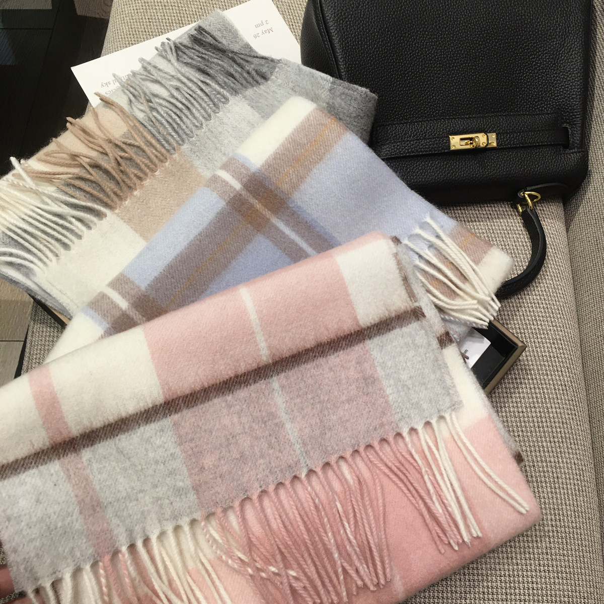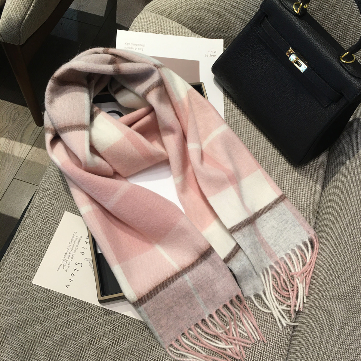 格纹澳洲羊毛围巾100%纯羊绒披肩