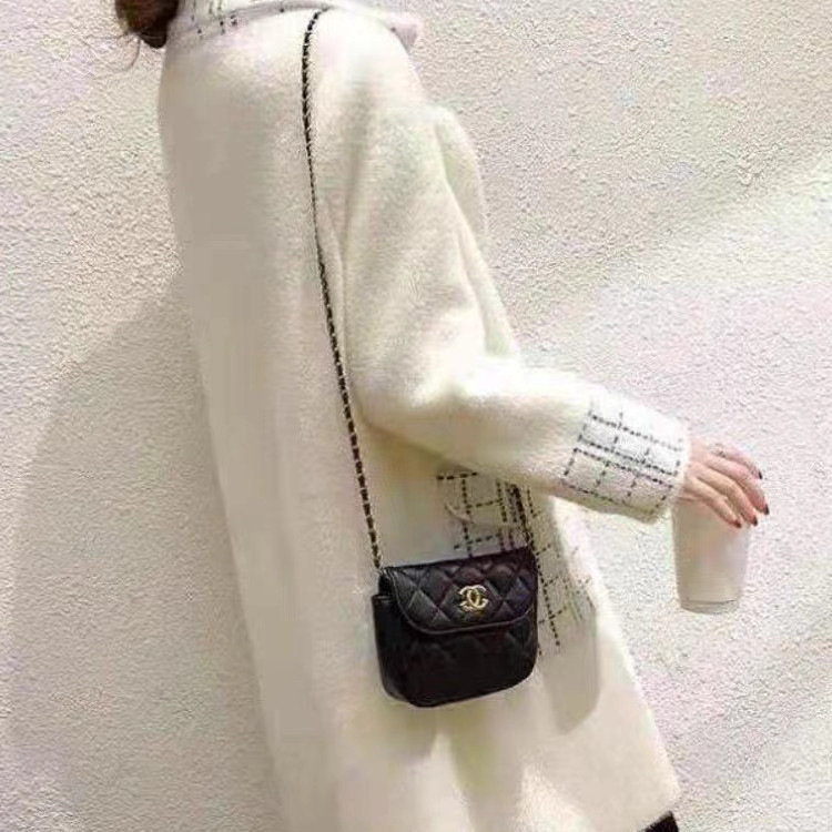 设计感拼接毛衣开衫女中长款春秋季新款宽松仿貂绒加厚针织外套冬