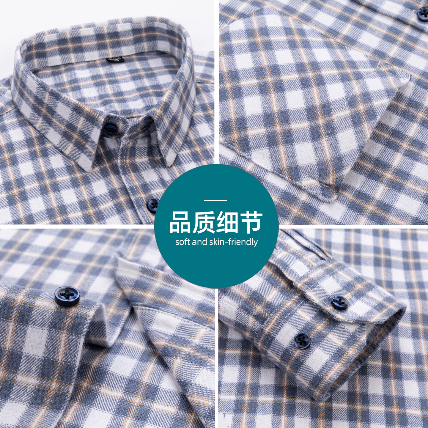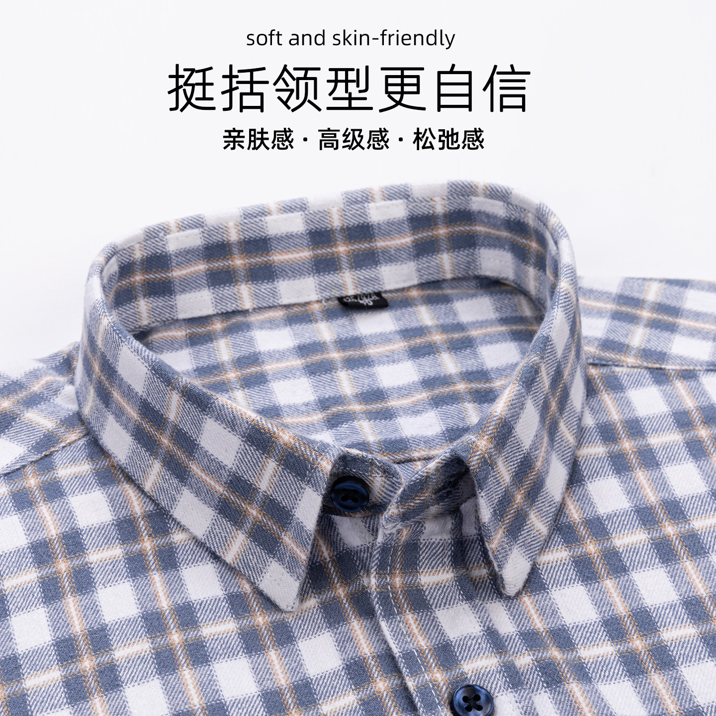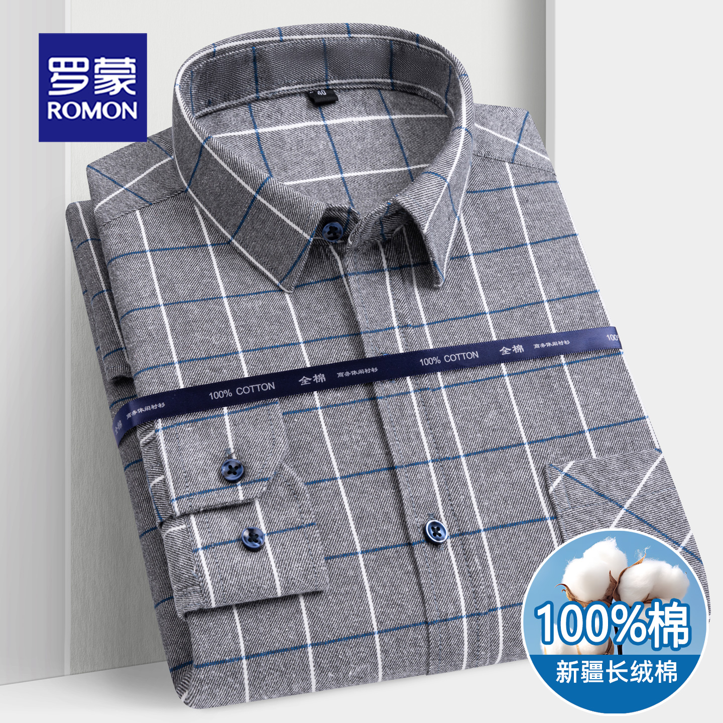 罗蒙2025新款纯棉磨毛格子中青年大码开衫休闲衬衣长袖衬衫男装