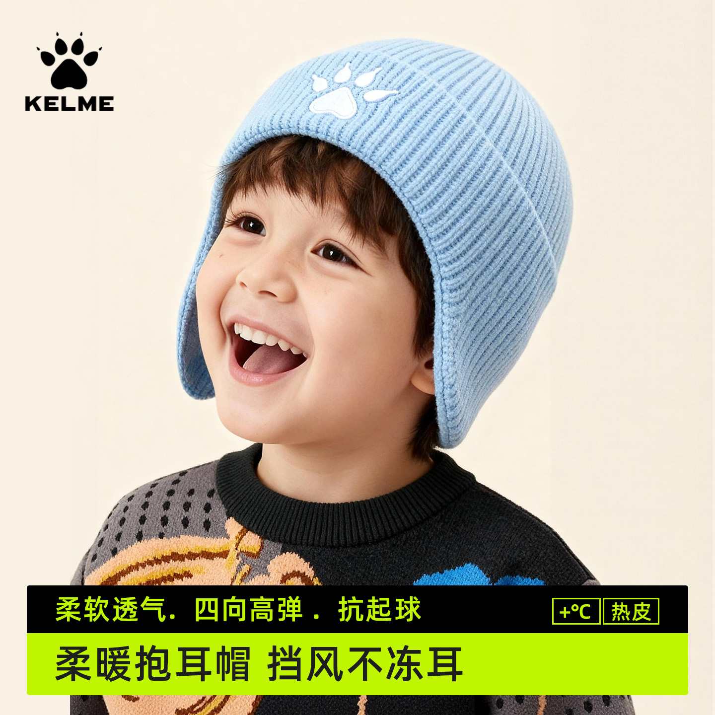 卡尔美儿童护耳帽子 KELME毛线帽针织保暖秋冬款套头帽男童女秋款