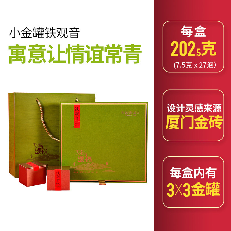 天福茗茶 颂福安溪茶叶铁观音茶叶清香型乌龙茶礼盒202克