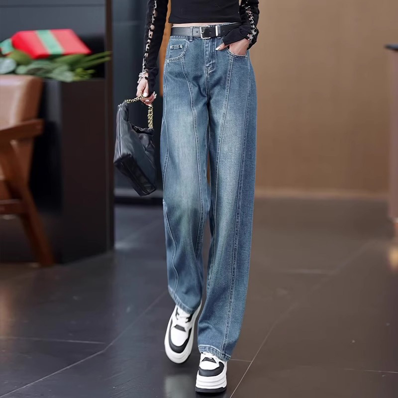 啄木鸟黄色软牛仔阔腿裤女春秋爆款女裤休闲百搭直筒弯刀裤子