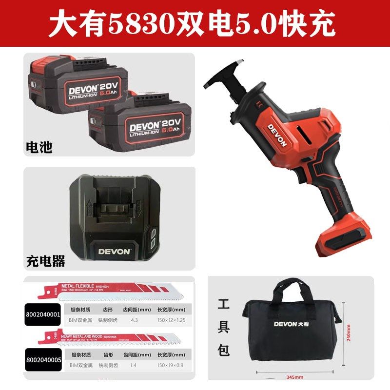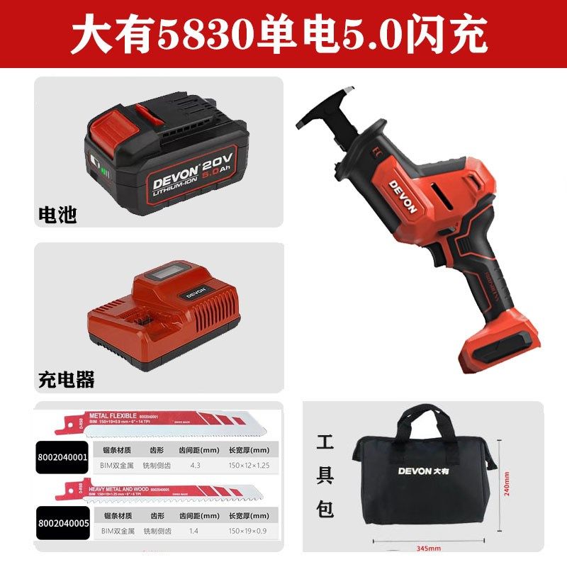 大有锂电往复锯家用小型手s持切割多功能木工手电锯马刀锯5830大
