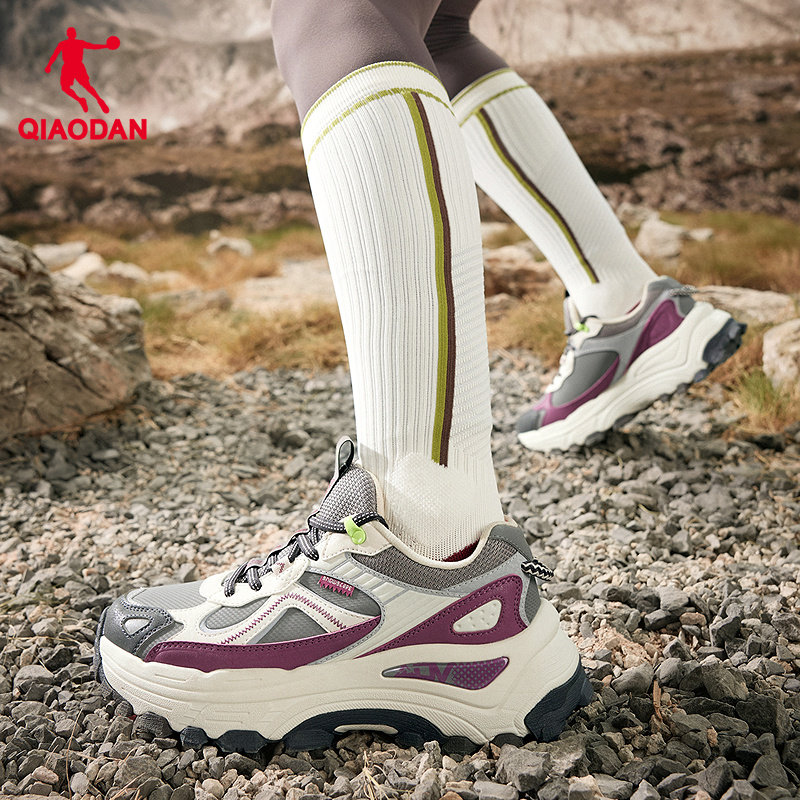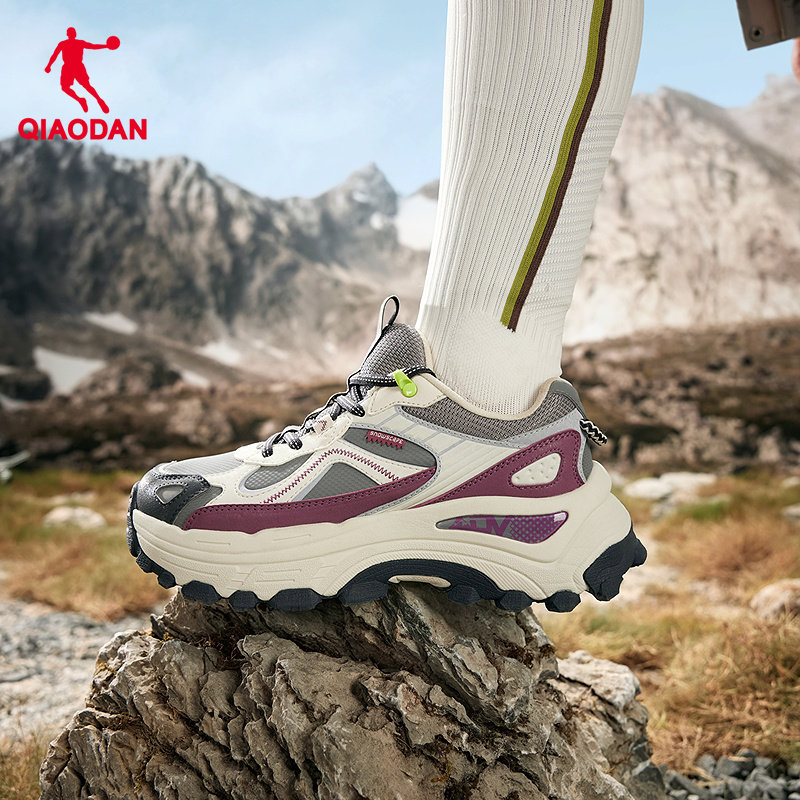 商场同款乔丹户外休闲鞋女2025冬季新款紫色厚底山系低帮徒步运动