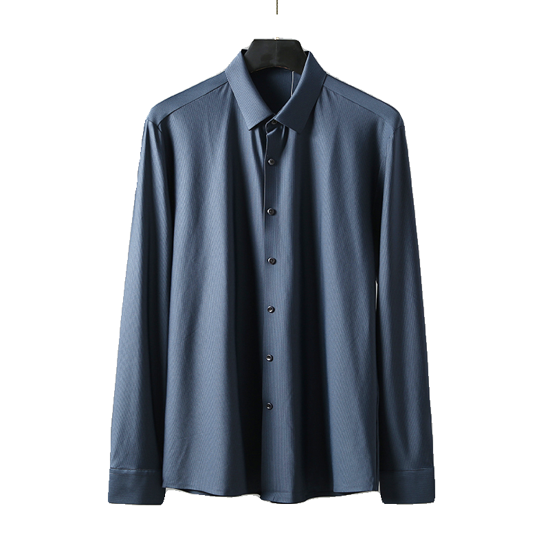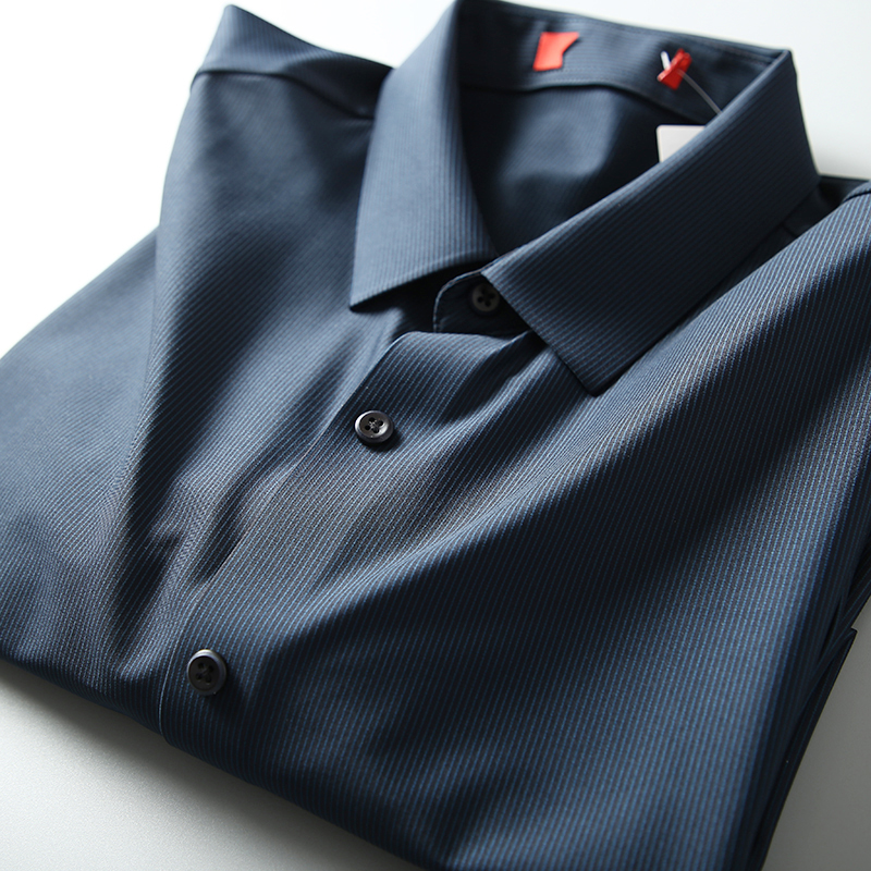 无缝面料长袖衬衫商务休闲条纹工装通勤上班日常弹力无痕压胶衬衣