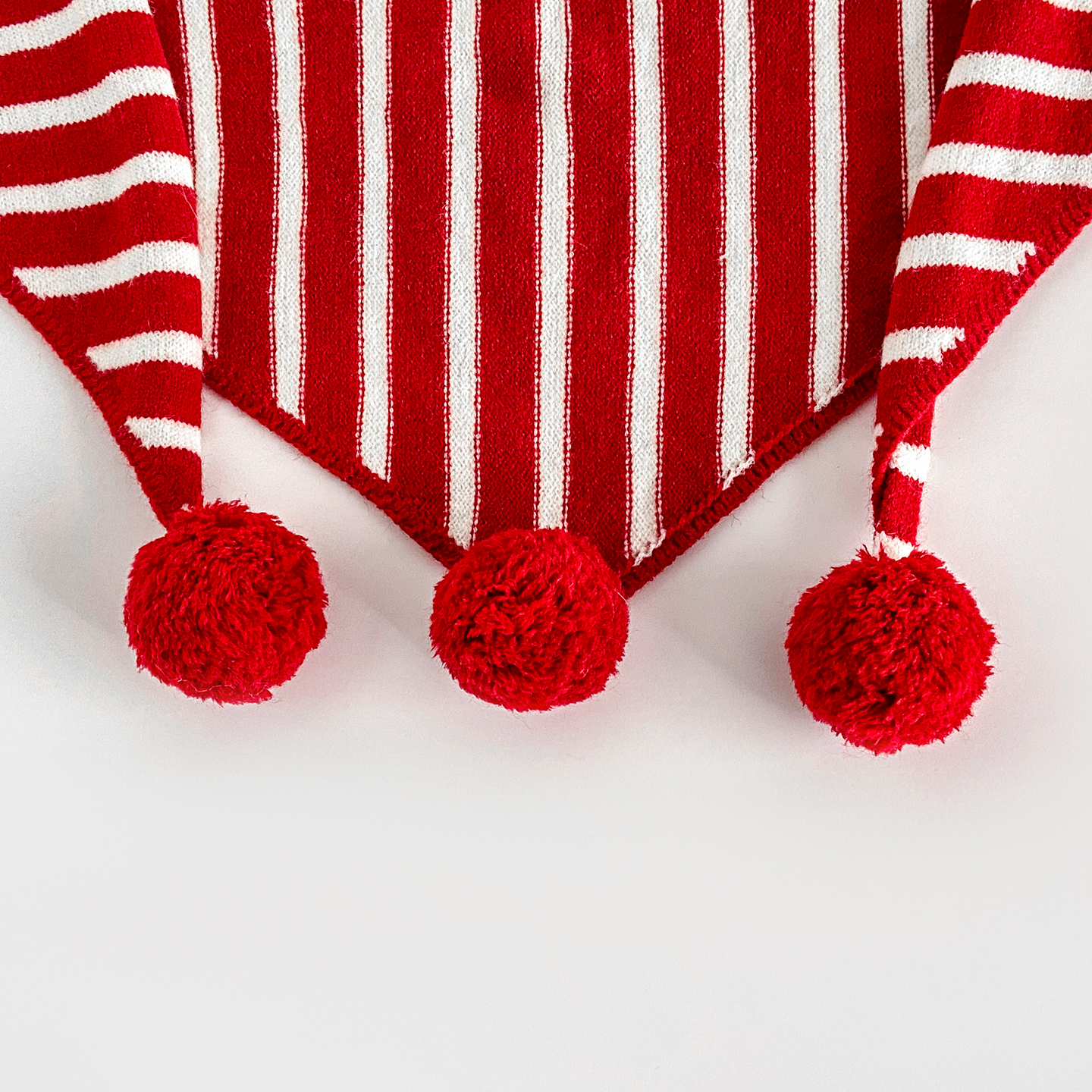 2025新款韩版可爱球球红色条纹三角围巾女秋冬季保暖百搭披肩围脖