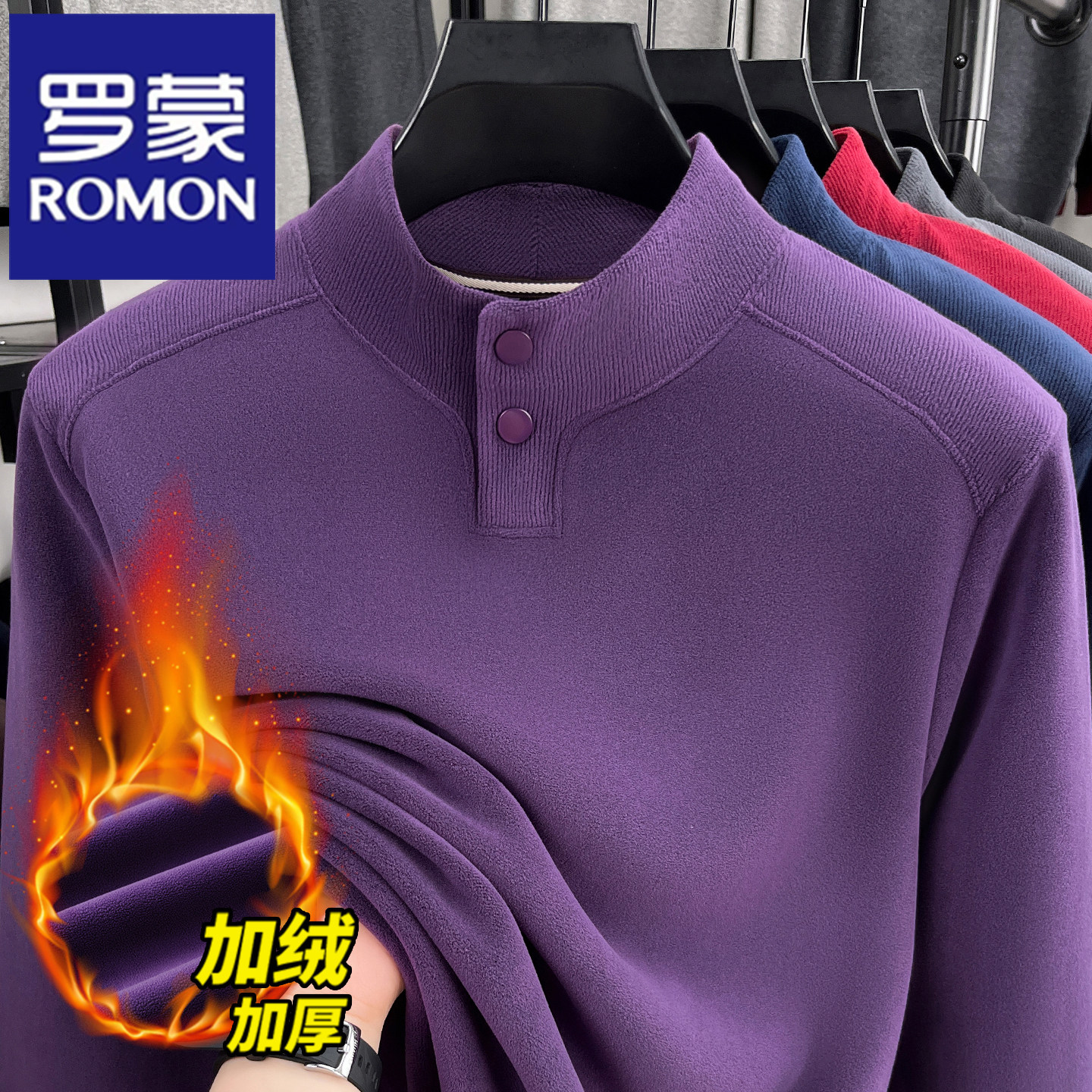 罗蒙正品冬季男士卫衣半高领奥粒绒加厚保暖打底衫双面绒长袖上衣