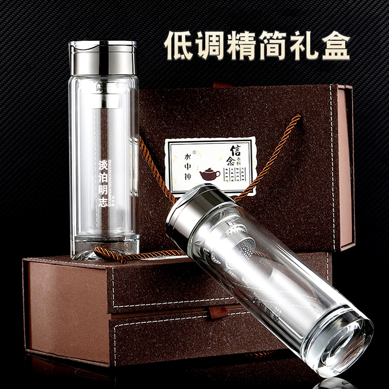 水中神玻璃杯双层加厚隔热泡茶杯便携带茶格车载高档水杯子定制