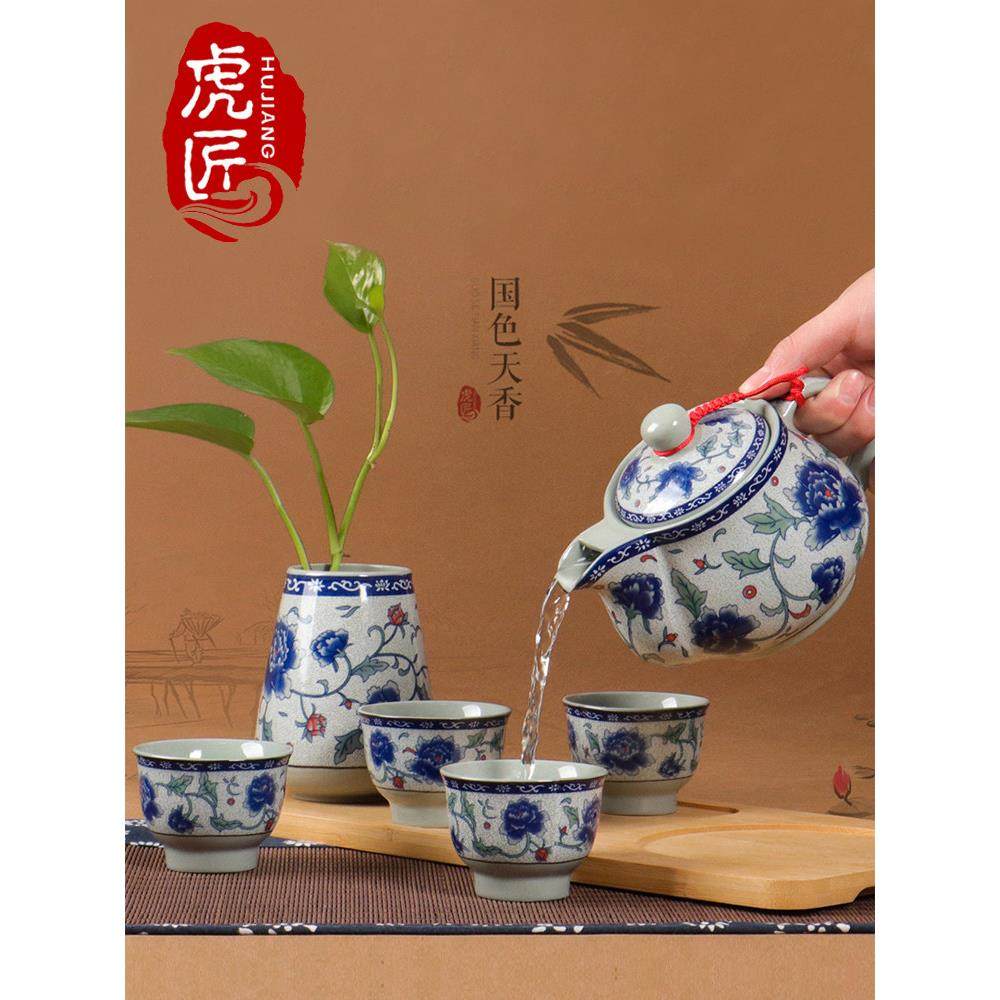 景德镇青花瓷陶瓷茶壶过滤单壶大号茶具500毫升容量家用泡茶套装