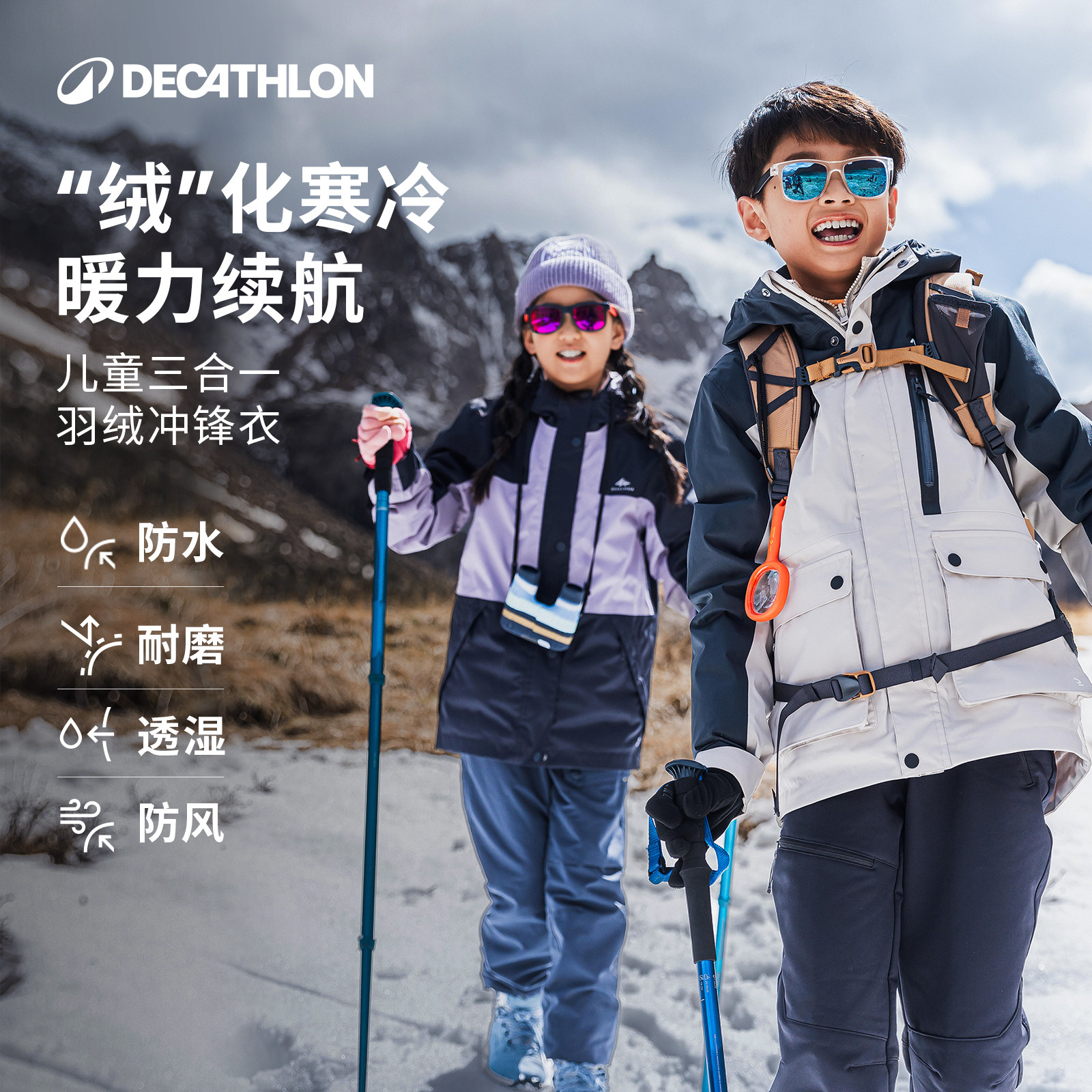 迪卡侬亲子装三合一羽绒服亲子装冲锋衣羽绒内胆秋冬保暖外套KIDS