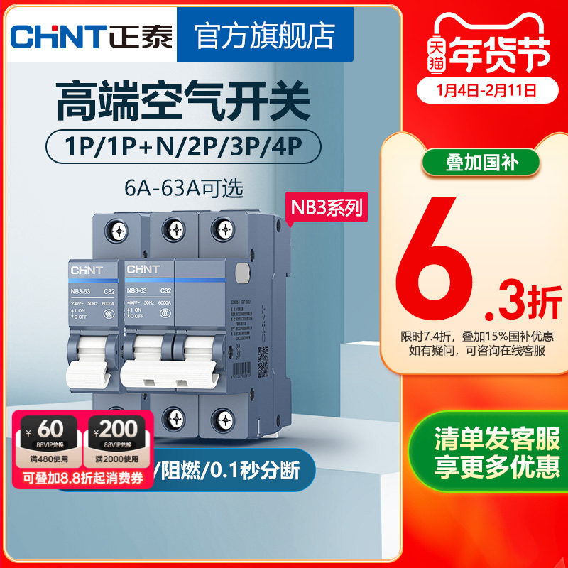 正泰空气开关NB3断路器32A总空开家用1P短路保护2P空调20A热水器