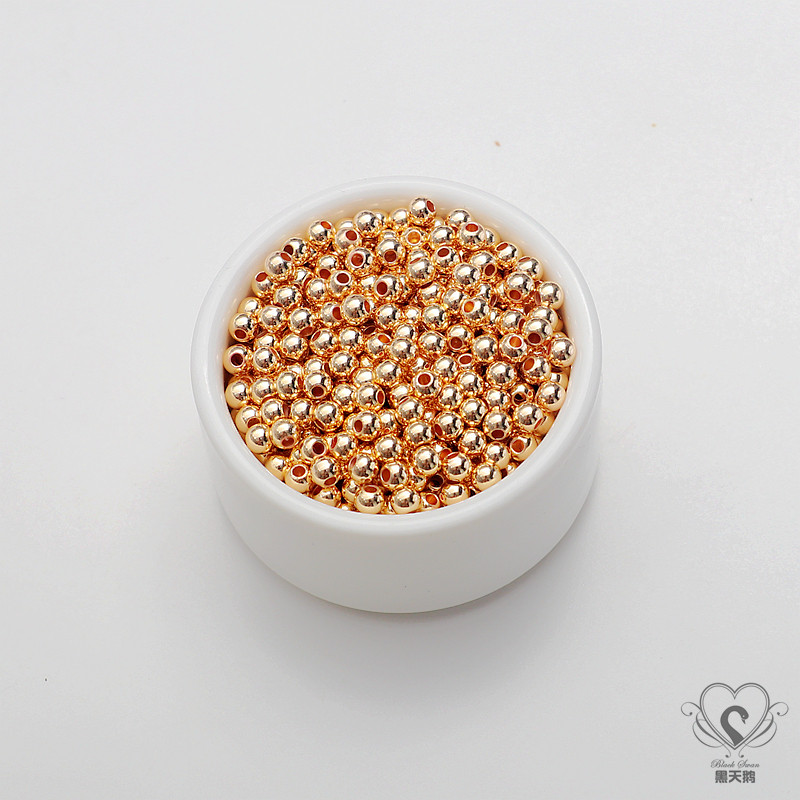 100颗价14k包金珠保色银玫瑰金光面圆珠diy手链项链饰品配件整袋
