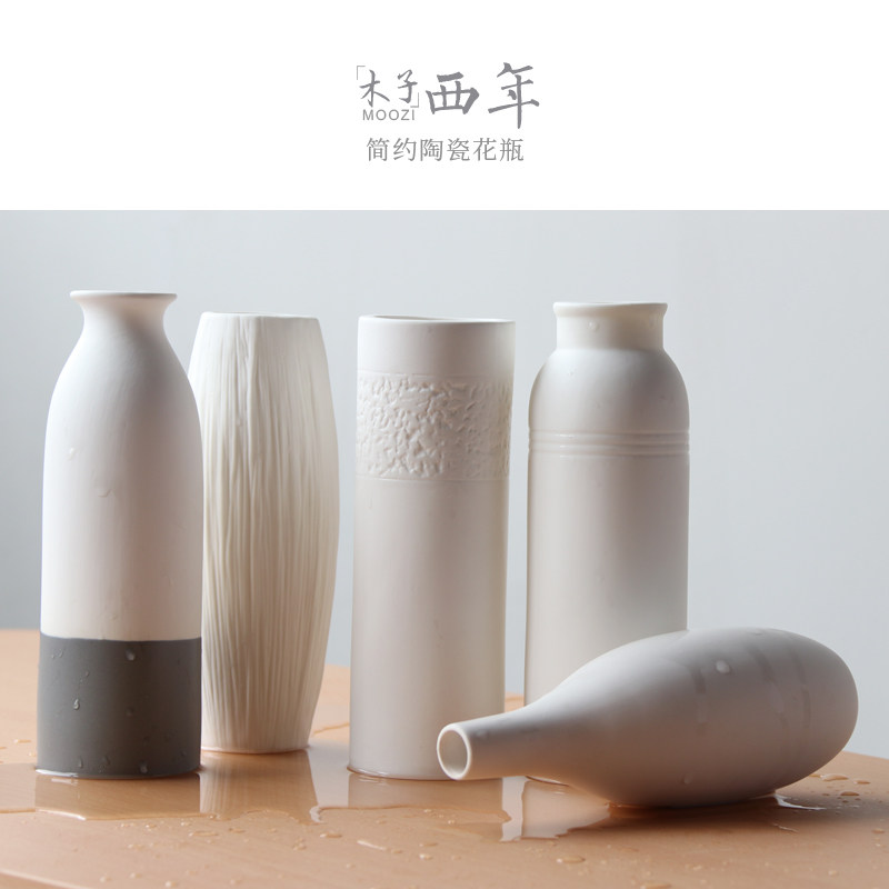日式简约白色素烧摆件客厅饰品欧式现代花艺北欧风格家居陶瓷花瓶