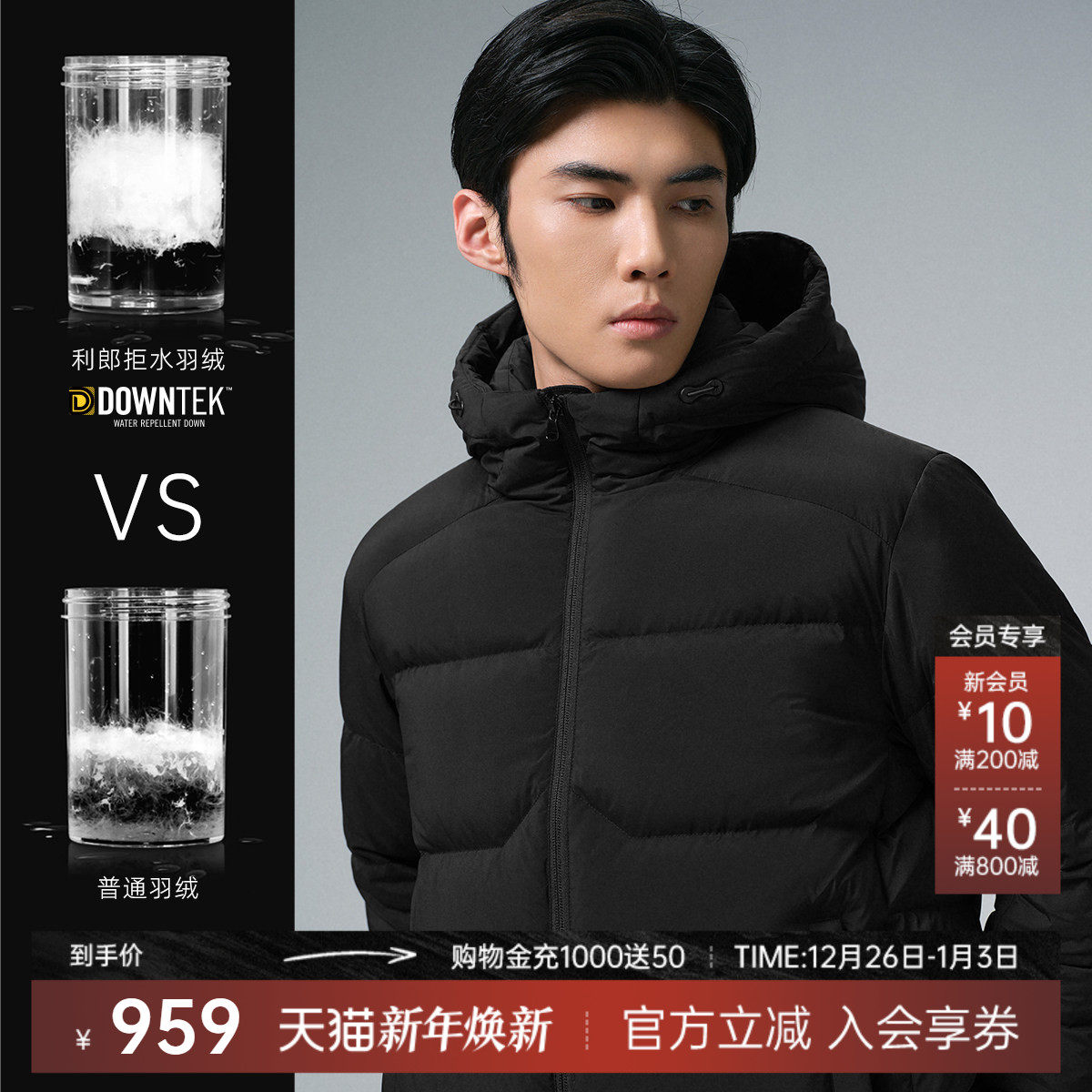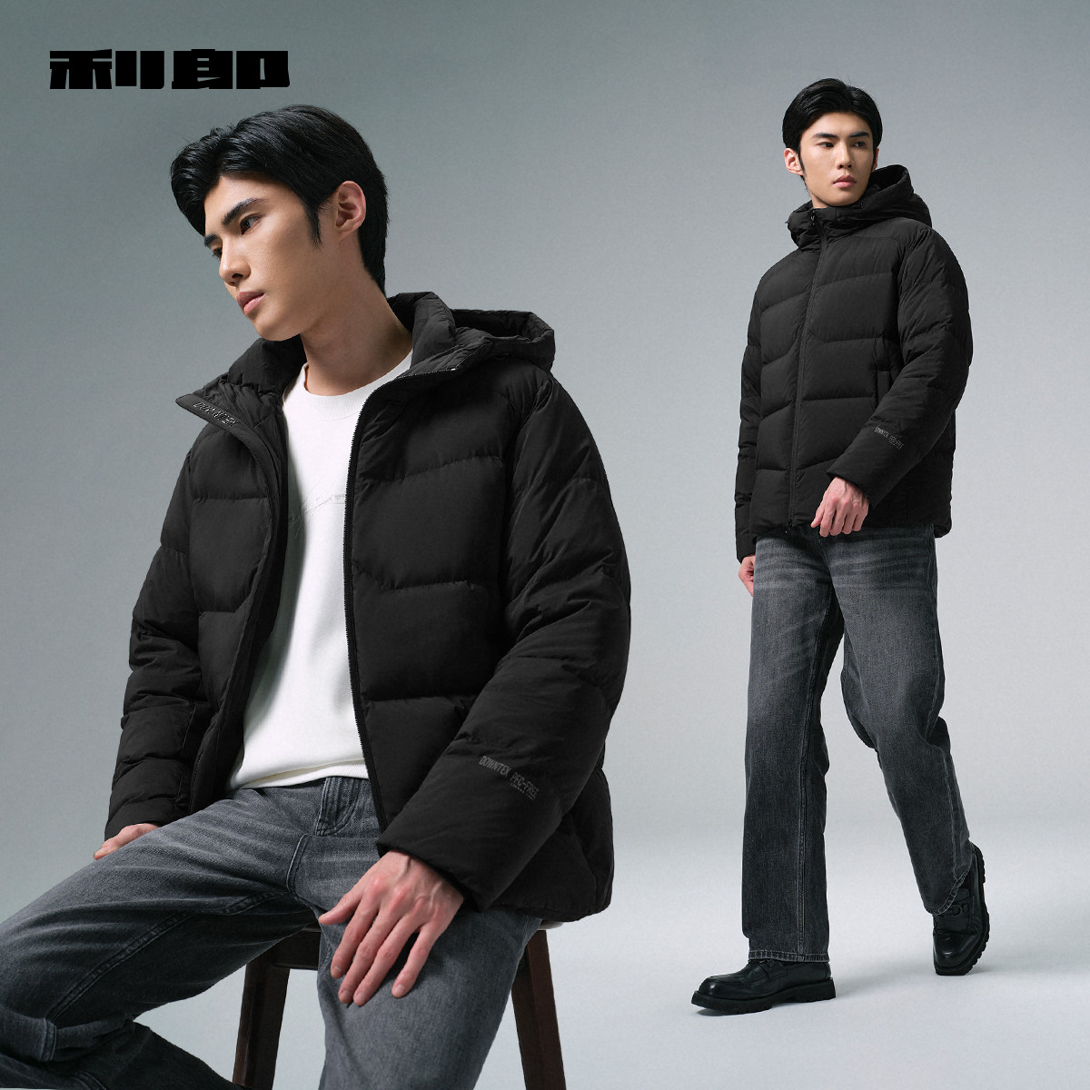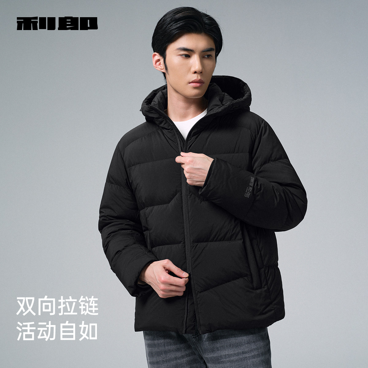 利郎官方可机洗连帽拒水羽绒服