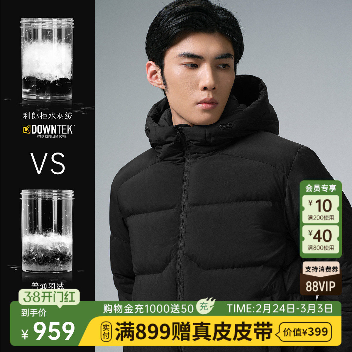 【拒水羽绒】利郎官方羽绒服男士连帽冬季新款保暖外套男装