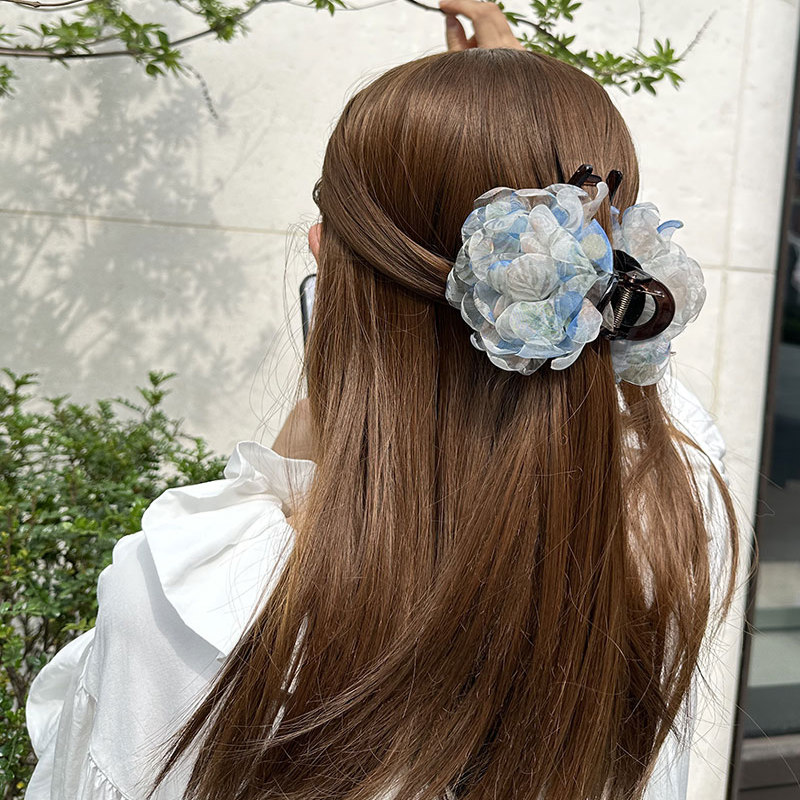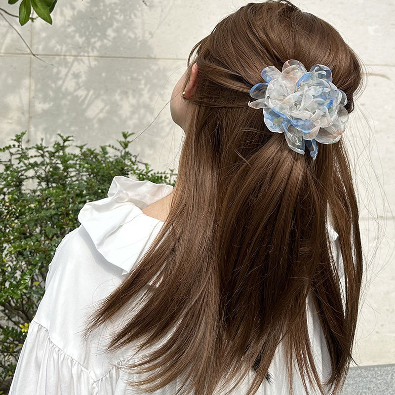 气质仙气网纱花朵抓夹女2025新款盘发器发夹后脑勺优雅鲨鱼夹子韩