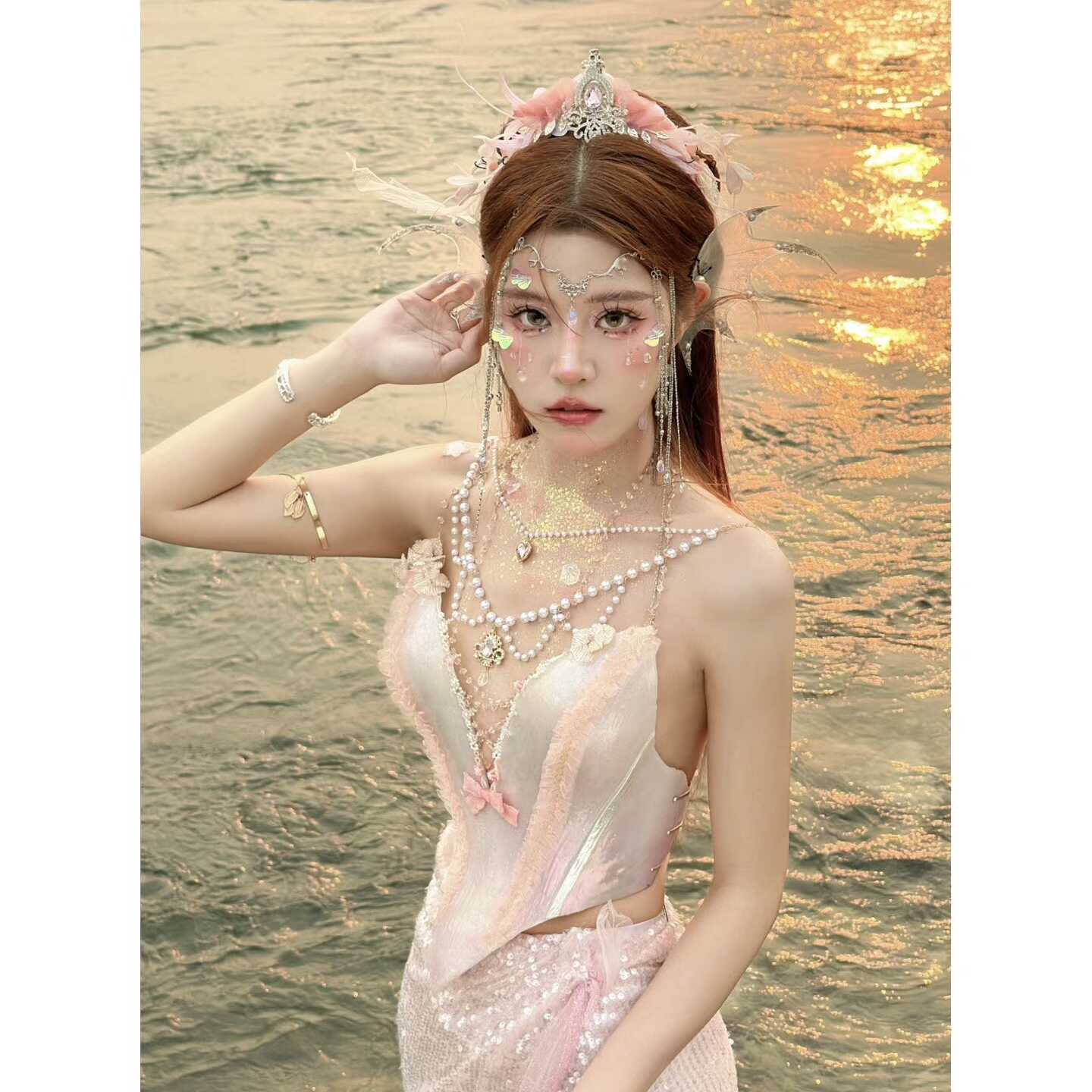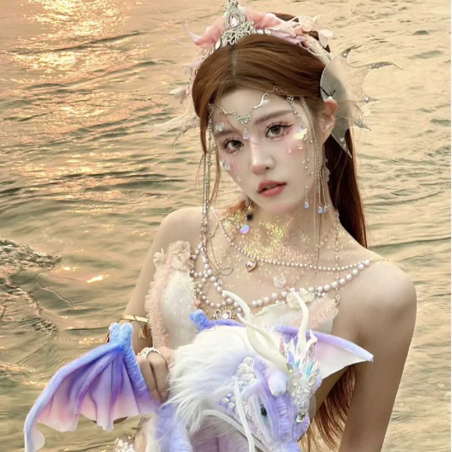 海洋美人鱼贝壳花环公主头饰皇冠洛丽塔摄影海螺发饰精灵鲛人耳挂