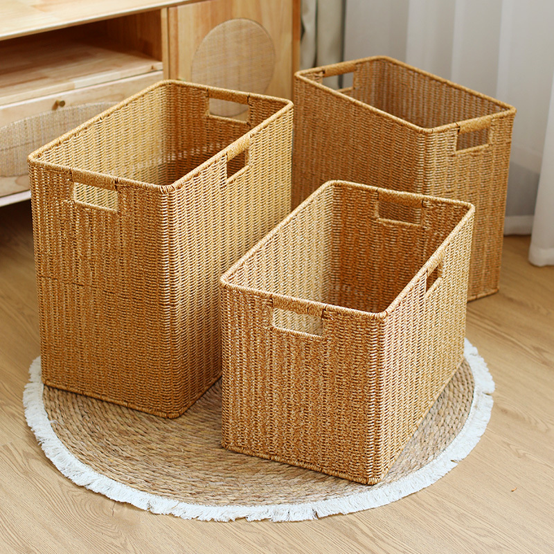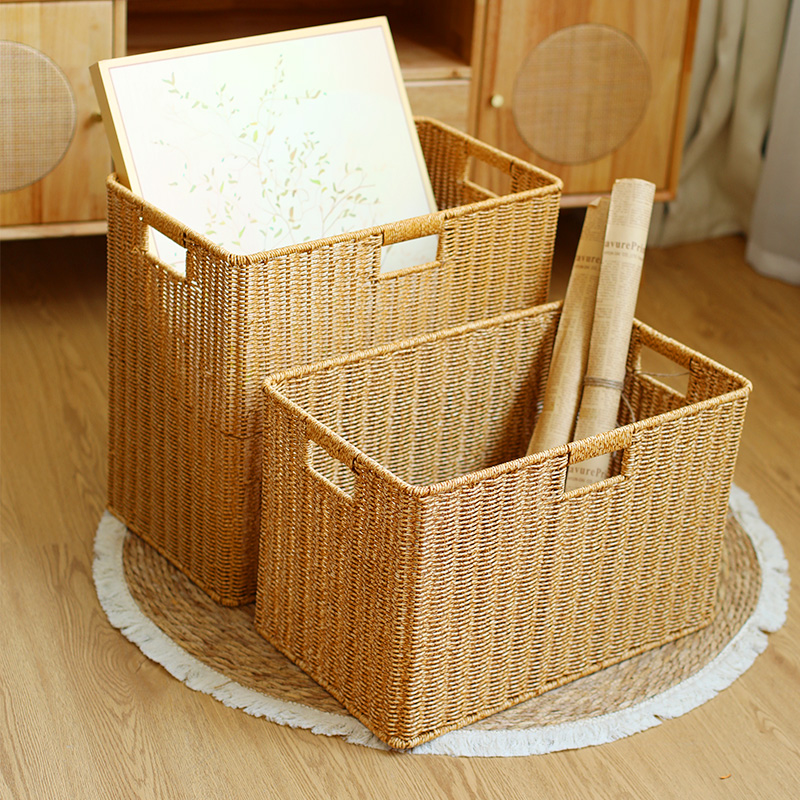 大号仿藤编书架收纳筐定制格子柜置物篮客厅橱柜杂物整理箱编织篮