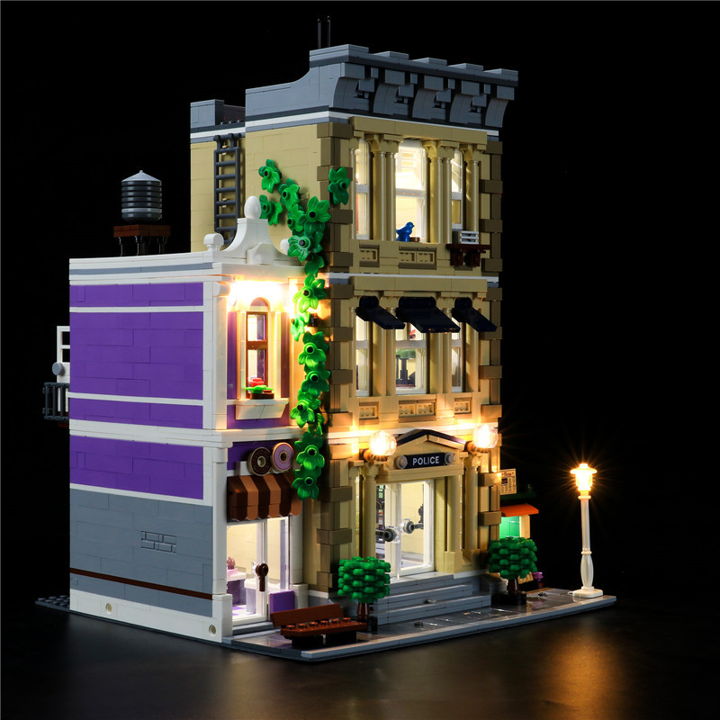 Yeabricks适用乐高 街景系列10278警察局led灯饰积木配件拼装灯光