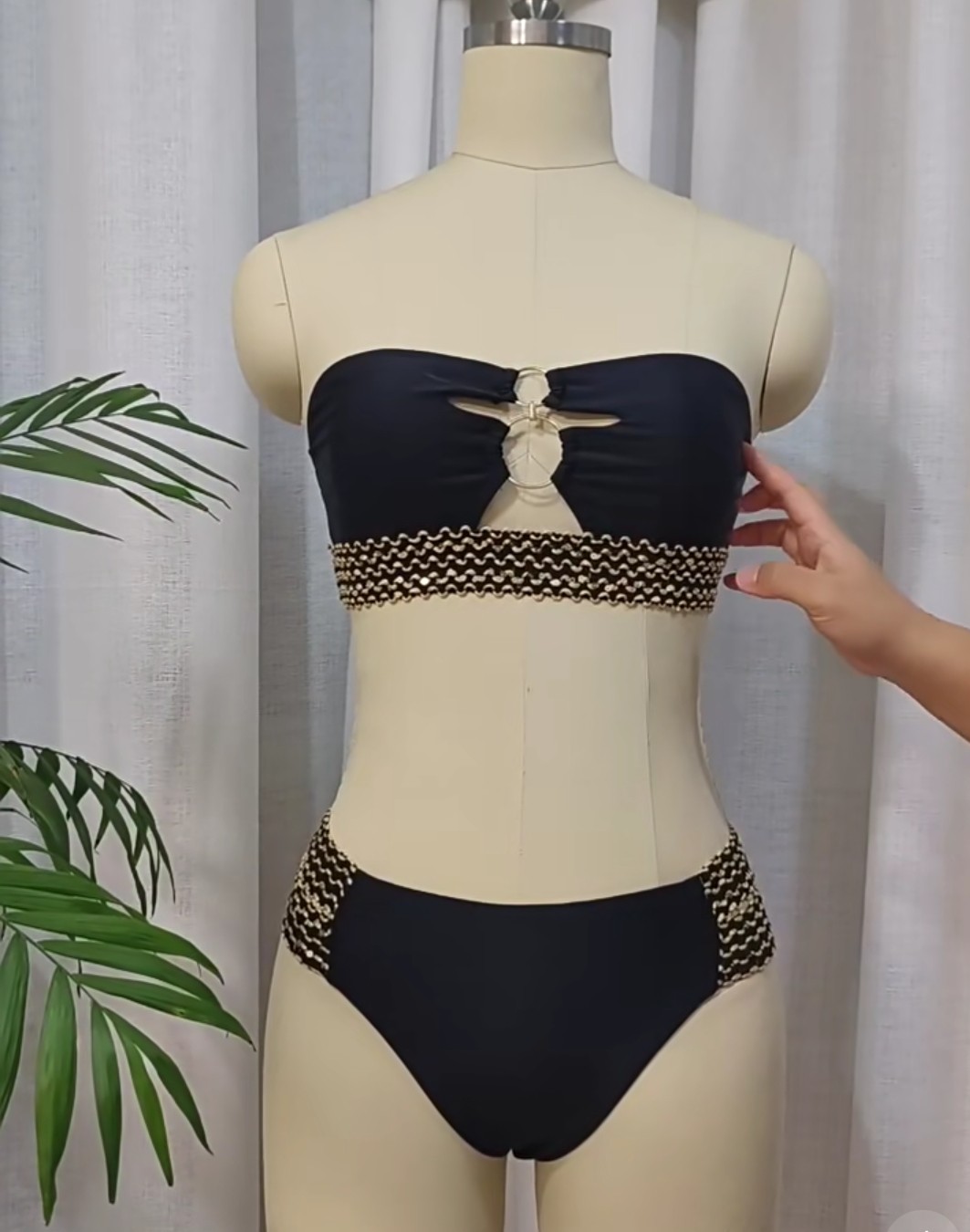「原住民club~*热辣夏日比基尼 ins风高級抹胸度假分体游泳衣