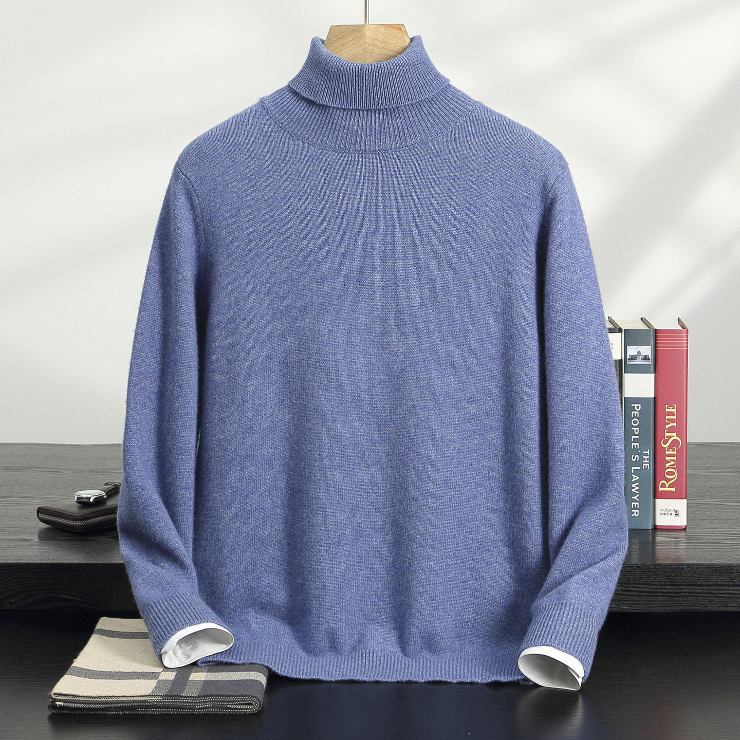 秋冬新款高翻领加厚纯色山羊绒衫